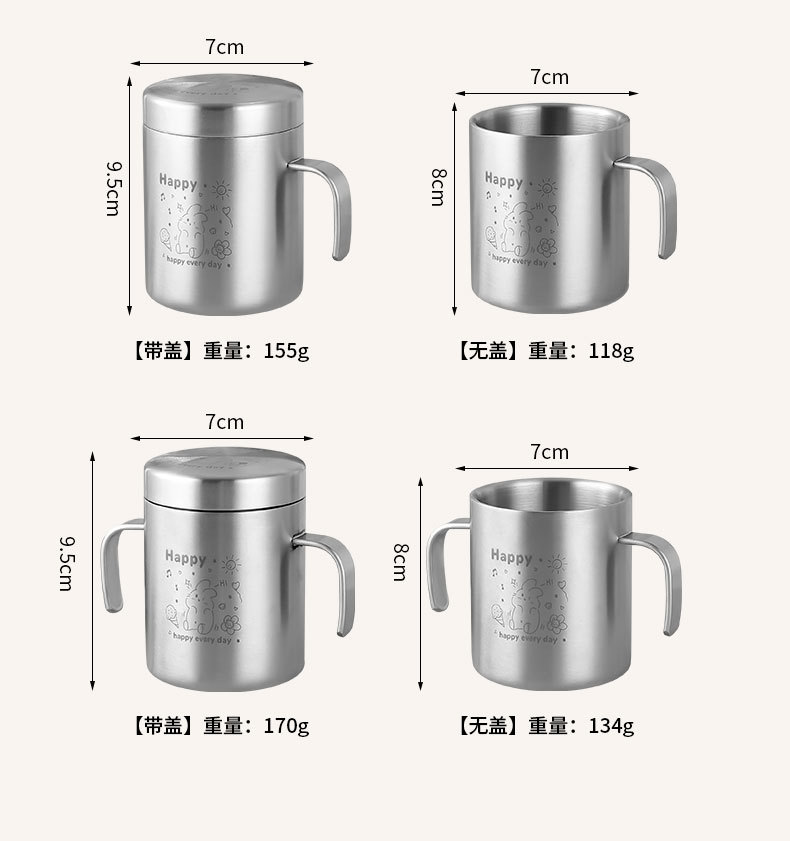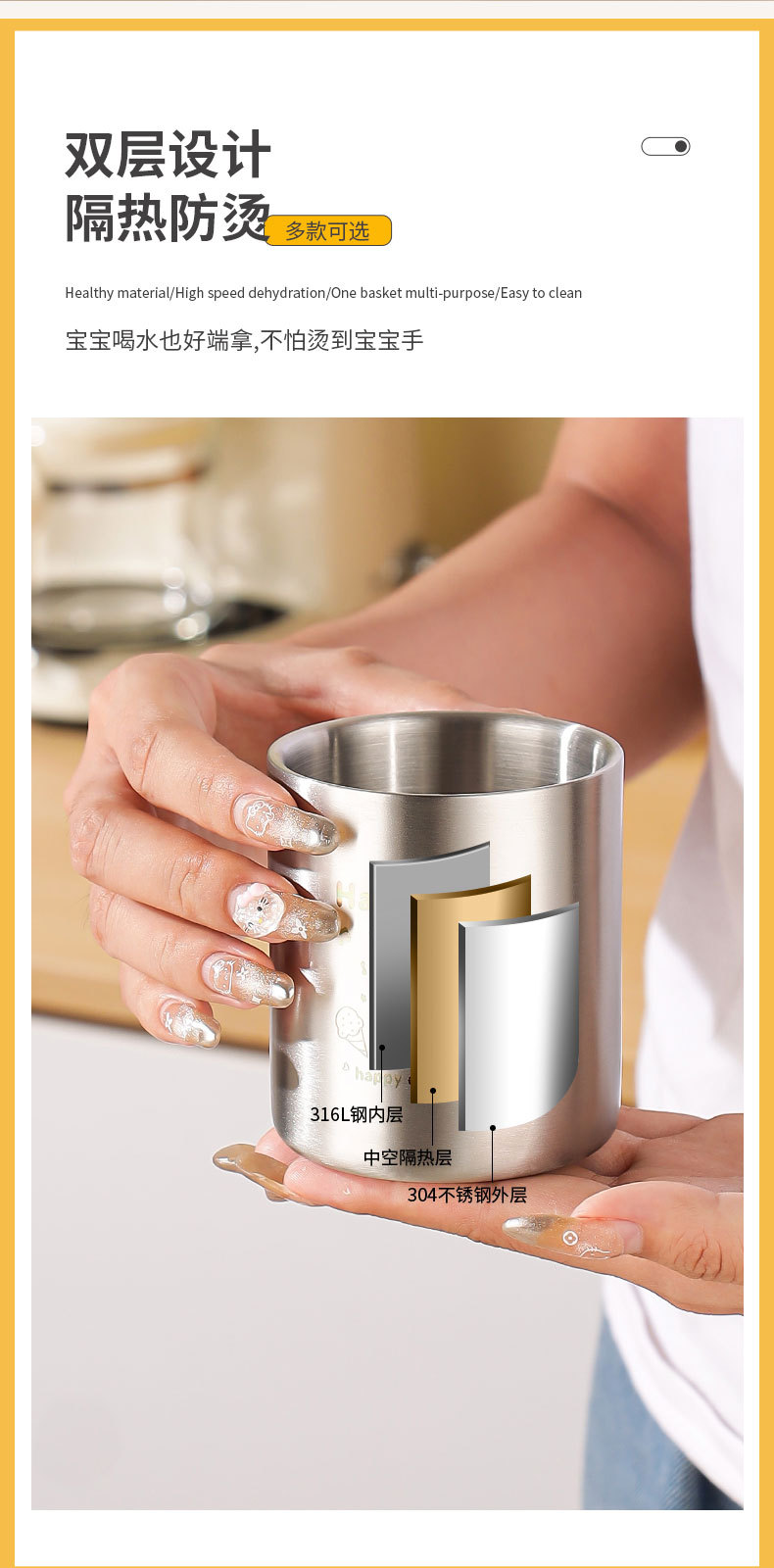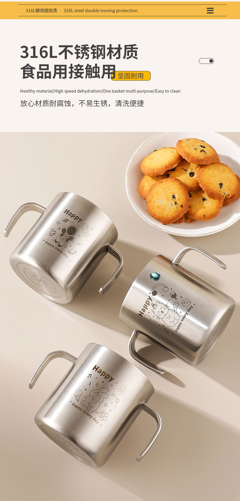 316 tazas de agua de acero inoxidable para niños, jardín de infantes a prueba de quemaduras, tazas de agua potable, tazas de leche caseras de doble capa, tazas de boca