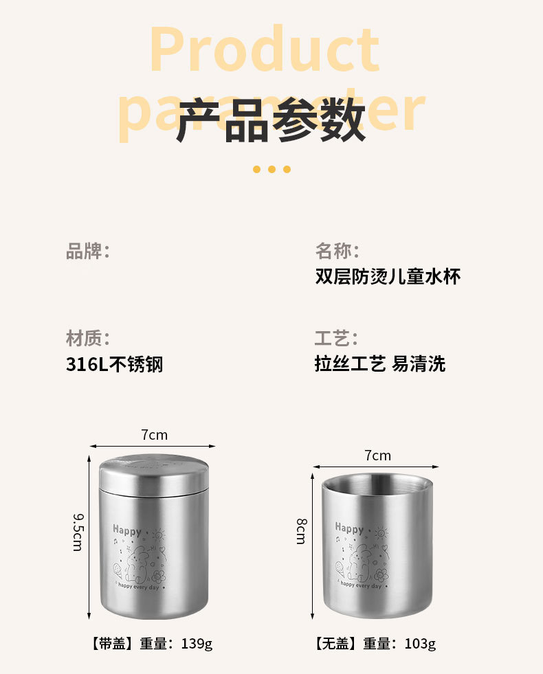 | Número de artículo | 316 vasos de agua para niños de acero inoxidable |