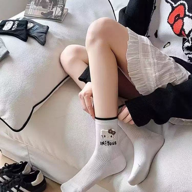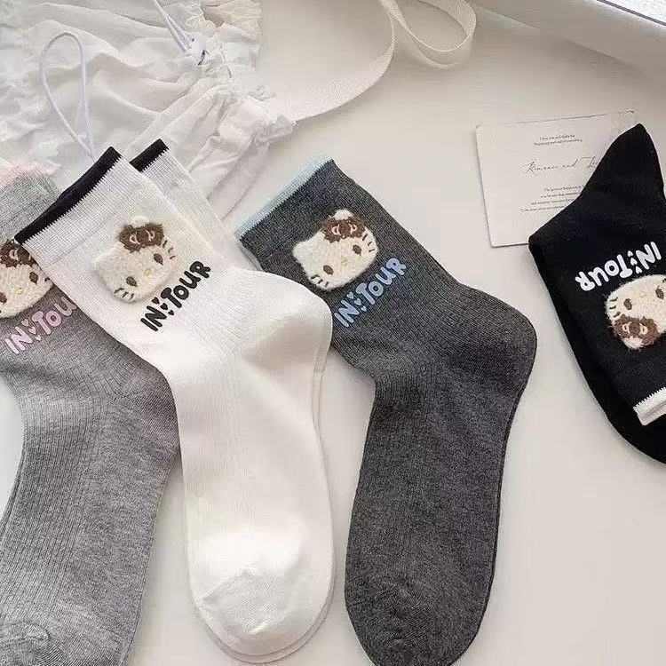 KT Gato calcetines coreanos dulces y lindos dibujos animados japoneses otoño invierno calcetines de pila de letras estudiantes