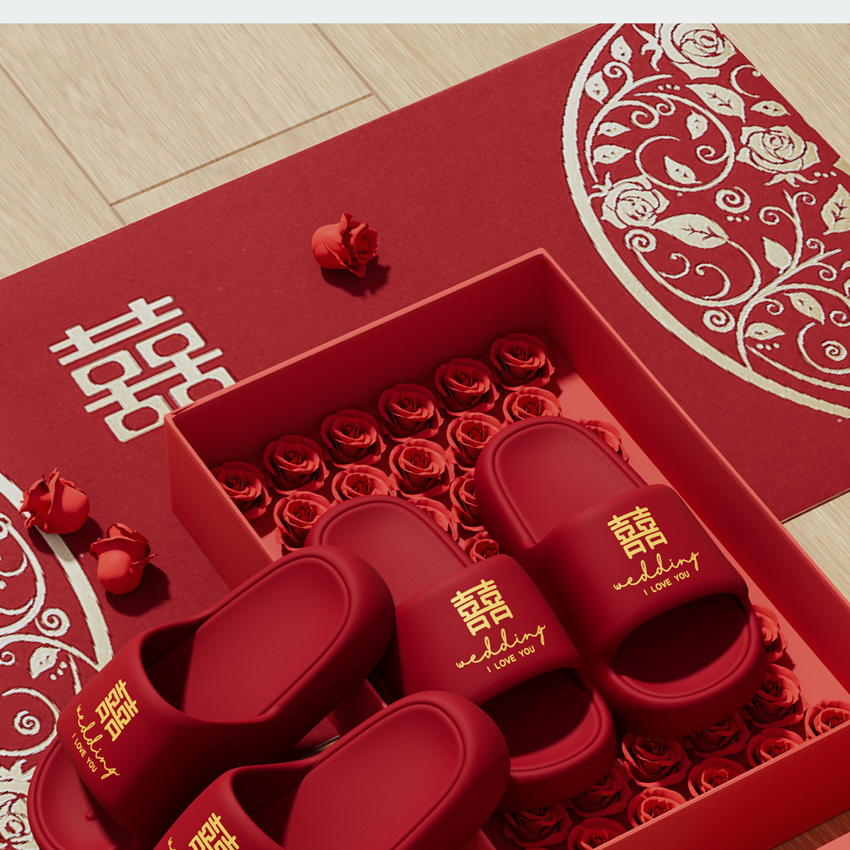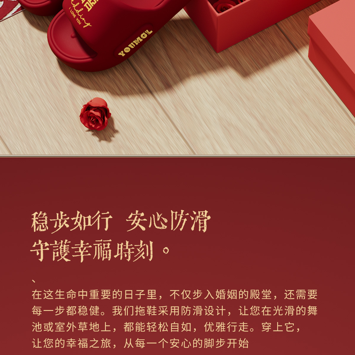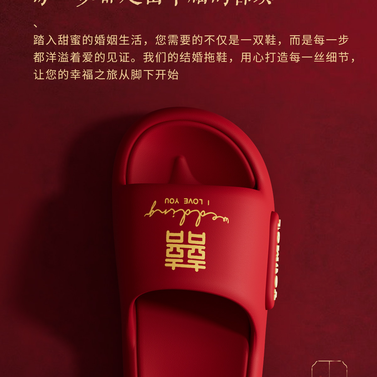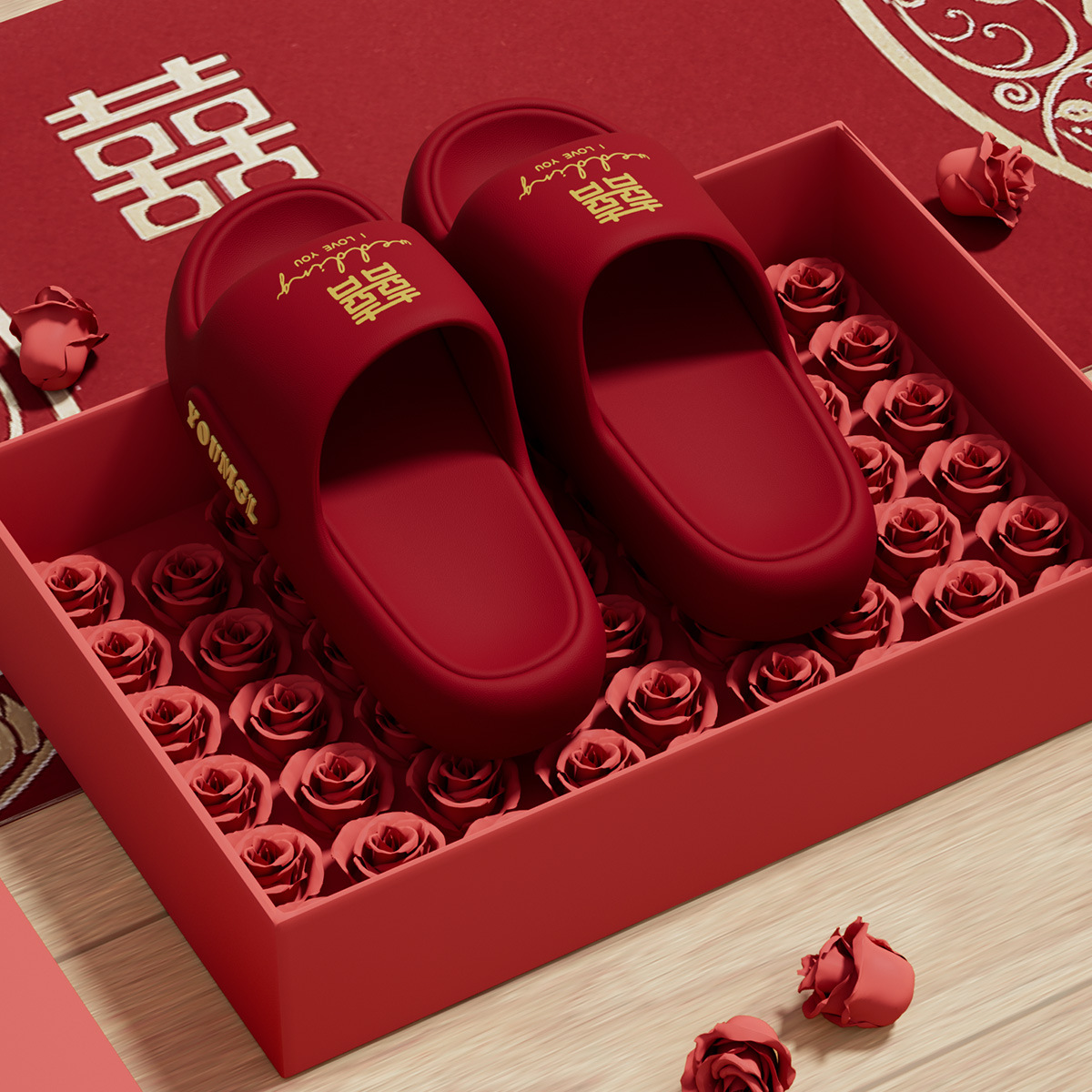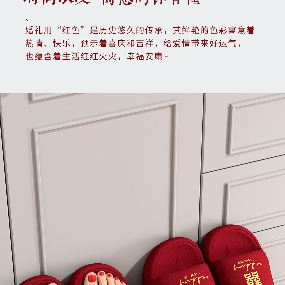 Zapatillas de verano para la boda festiva una pareja roja boda boda interior antideslizante baño ligero zapatillas frías