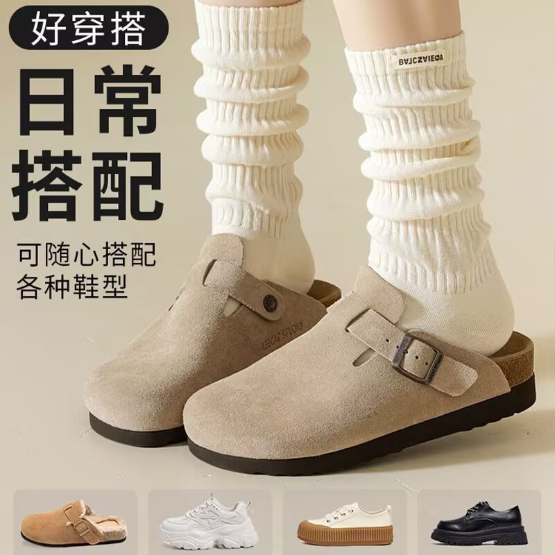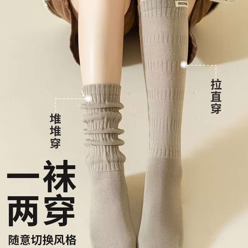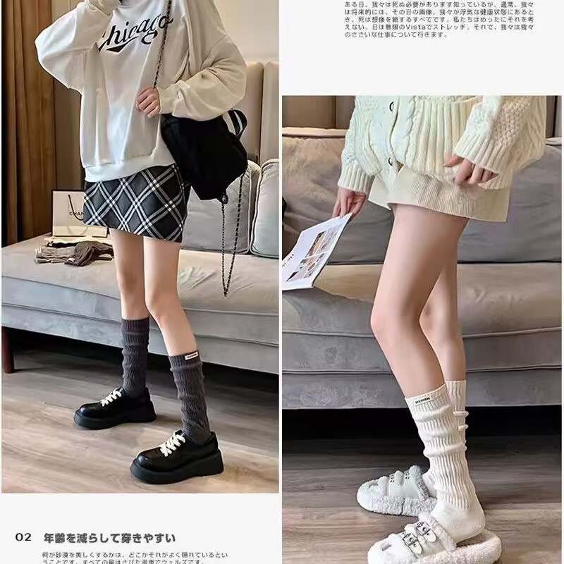 Insmode otoño y invierno calcetines de pantorrilla negras calcetines de color sólido para mujeres calcetines de pila para usar fuera con zapatos de cuero pequeños