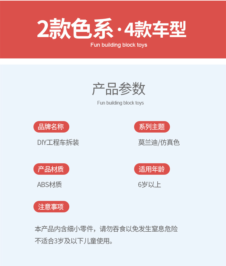 | Color | Vehículo de ingeniería de color simulado 1 vehículo de ingeniería de color simulado + 1 destornillador [bolsa oppo], vehículo de ingeniería Morandi 1 vehículo de ingeniería de color simulado + 1 destornillador [bolsa oppo], vehículo de ingeniería de color simulado 4 + 4 destornilladores [bolsa oppo], vehículo de ingeniería Morandi 4 + 4 destornilladores [bolsa oppo], [color simulado + color caramelo] 8 vehículos de Ingeniería |