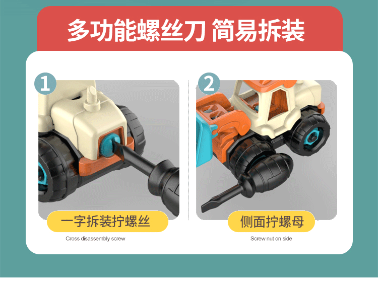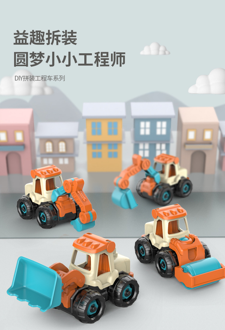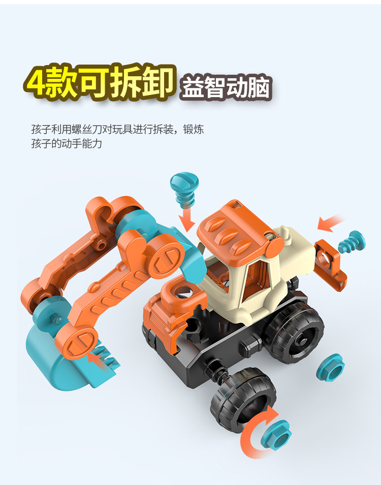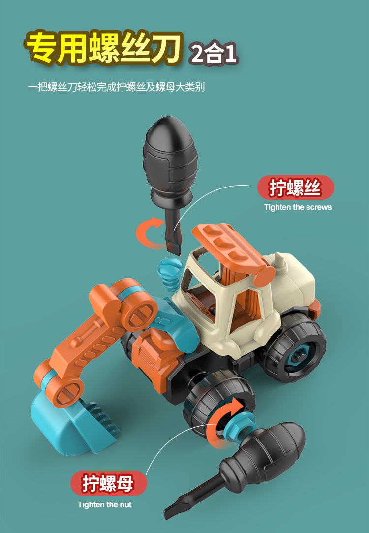 ingeniería de ensamblaje para niños tornillo tornillo tuerca ensamblaje juguete de puzzle desmontable excavadora cabina