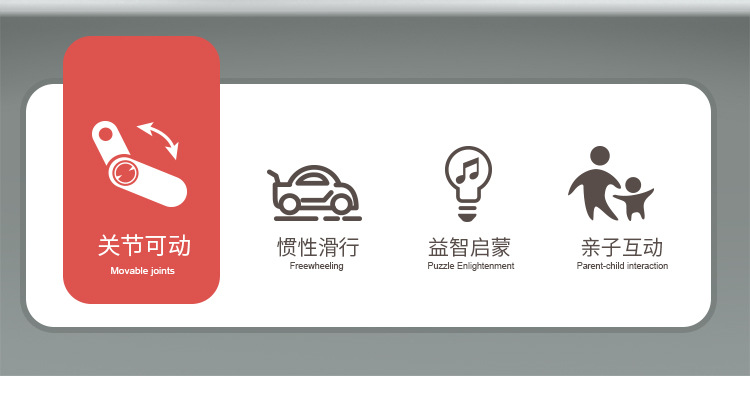 | Desarrollo de la capacidad | Visión, desarrollo intelectual, movimiento cerebral con las manos, agarre, coordinación mano - ojo, desarrollo de otras habilidades, juguetes interactivos, comunicación padre - hijo, desarrollo de intereses |