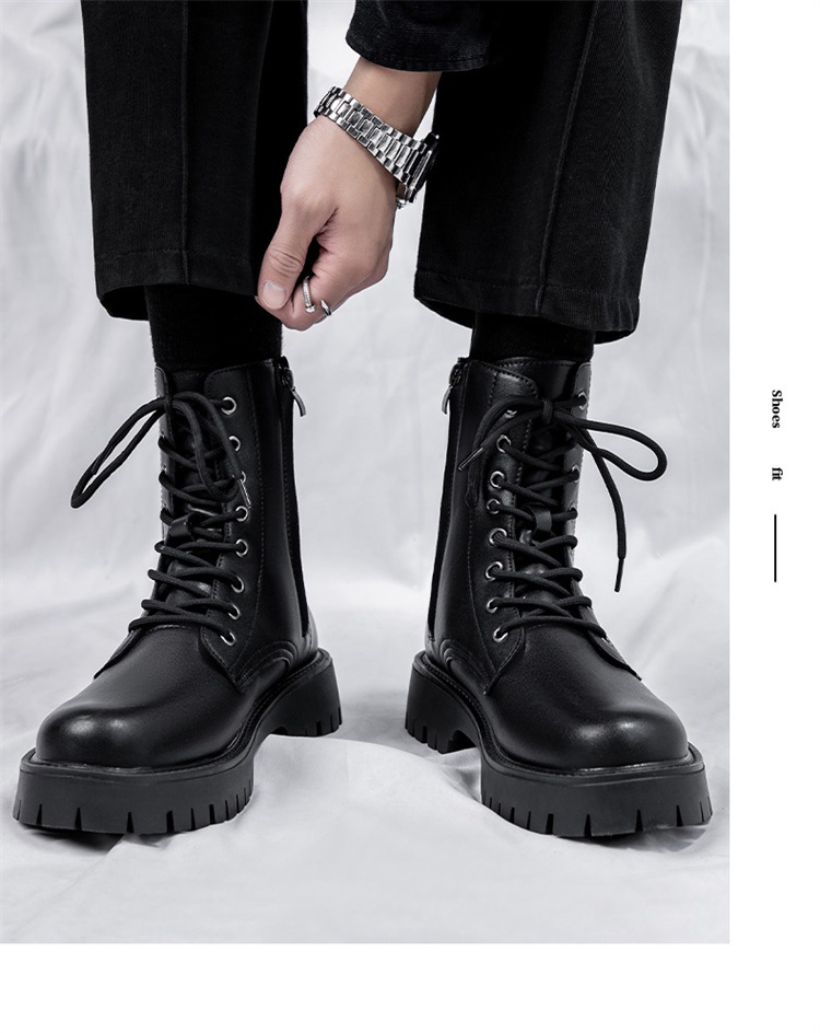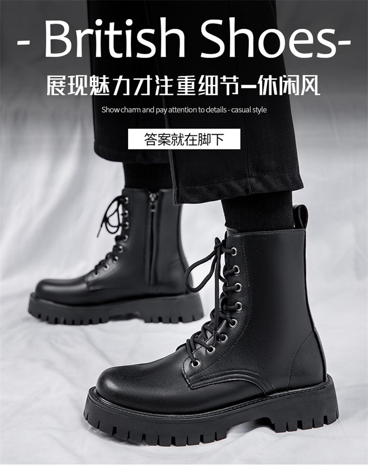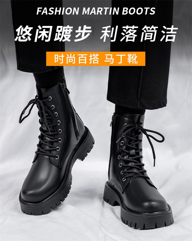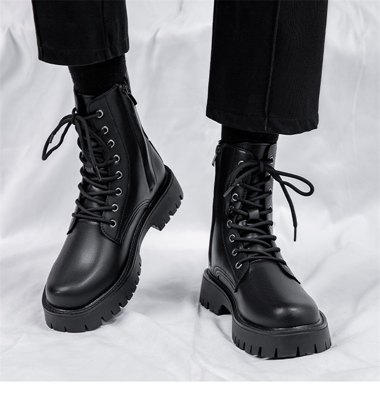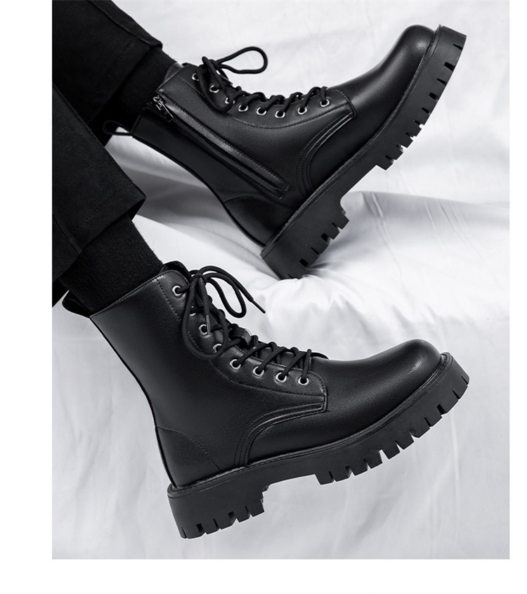 Martin botas de hombre otoño y invierno nueva cremallera de ocho agujeros estilo de viento británico tubo respirado zapatos de cuero de alta altura botas de trabajo de locomotora