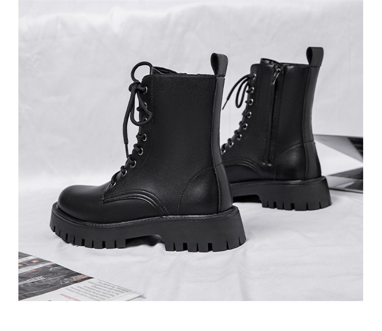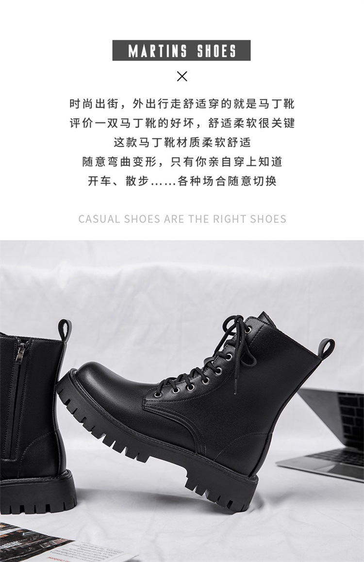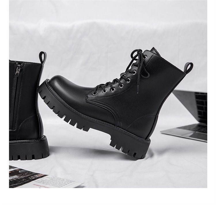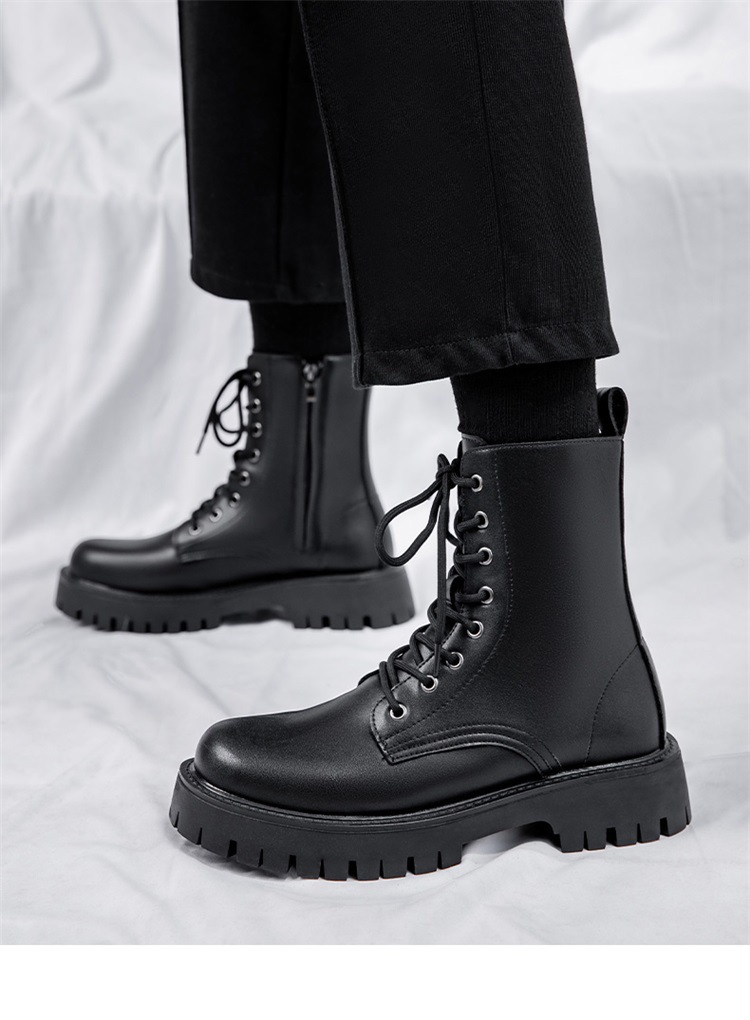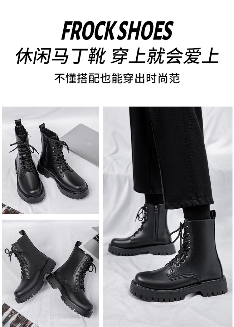 Martin botas de hombre otoño y invierno nueva cremallera de ocho agujeros estilo de viento británico tubo respirado zapatos de cuero de alta altura botas de trabajo de locomotora