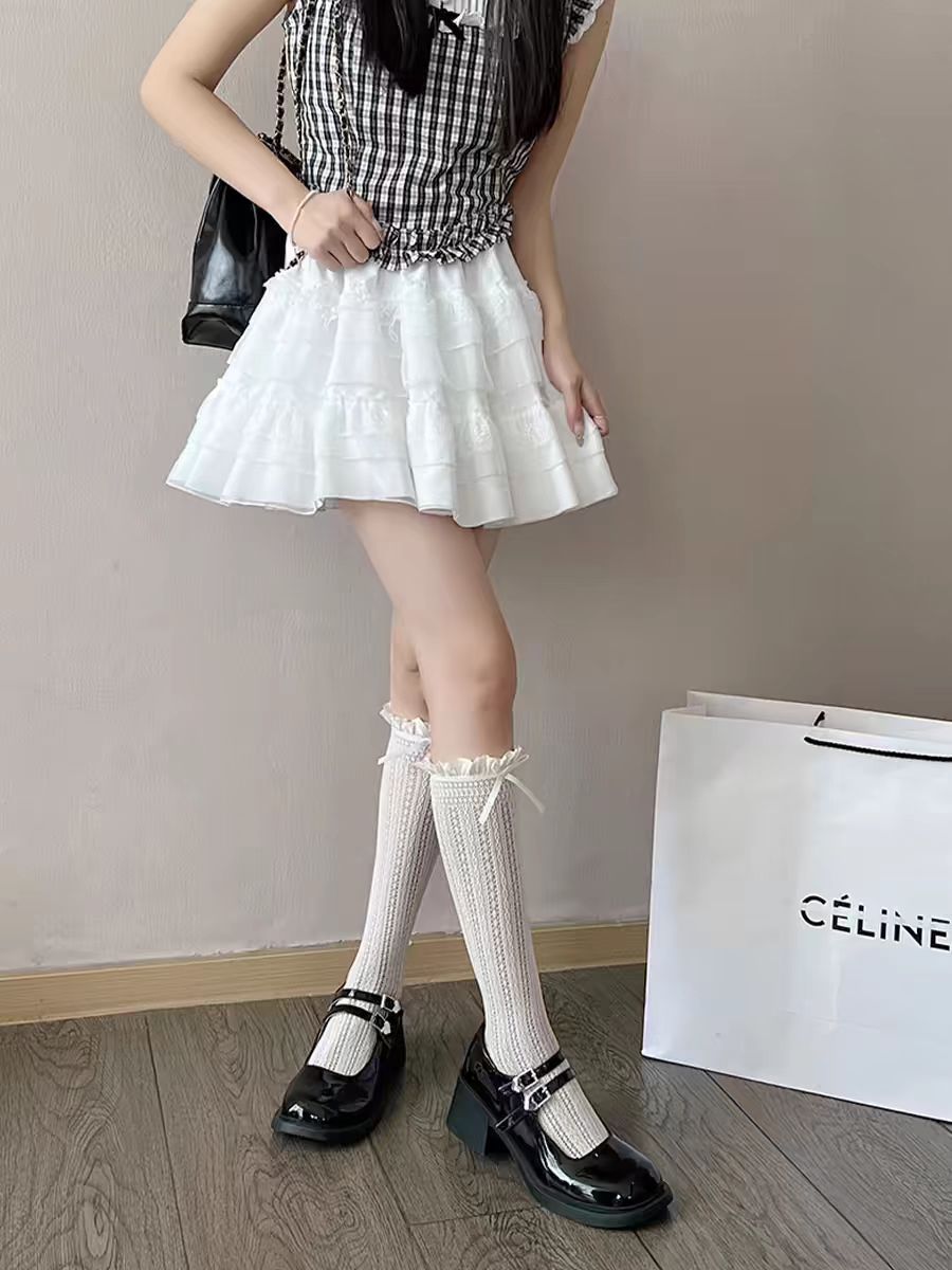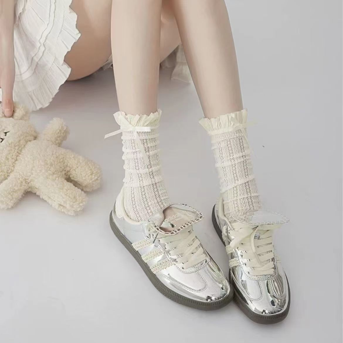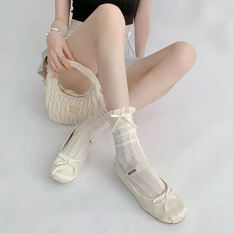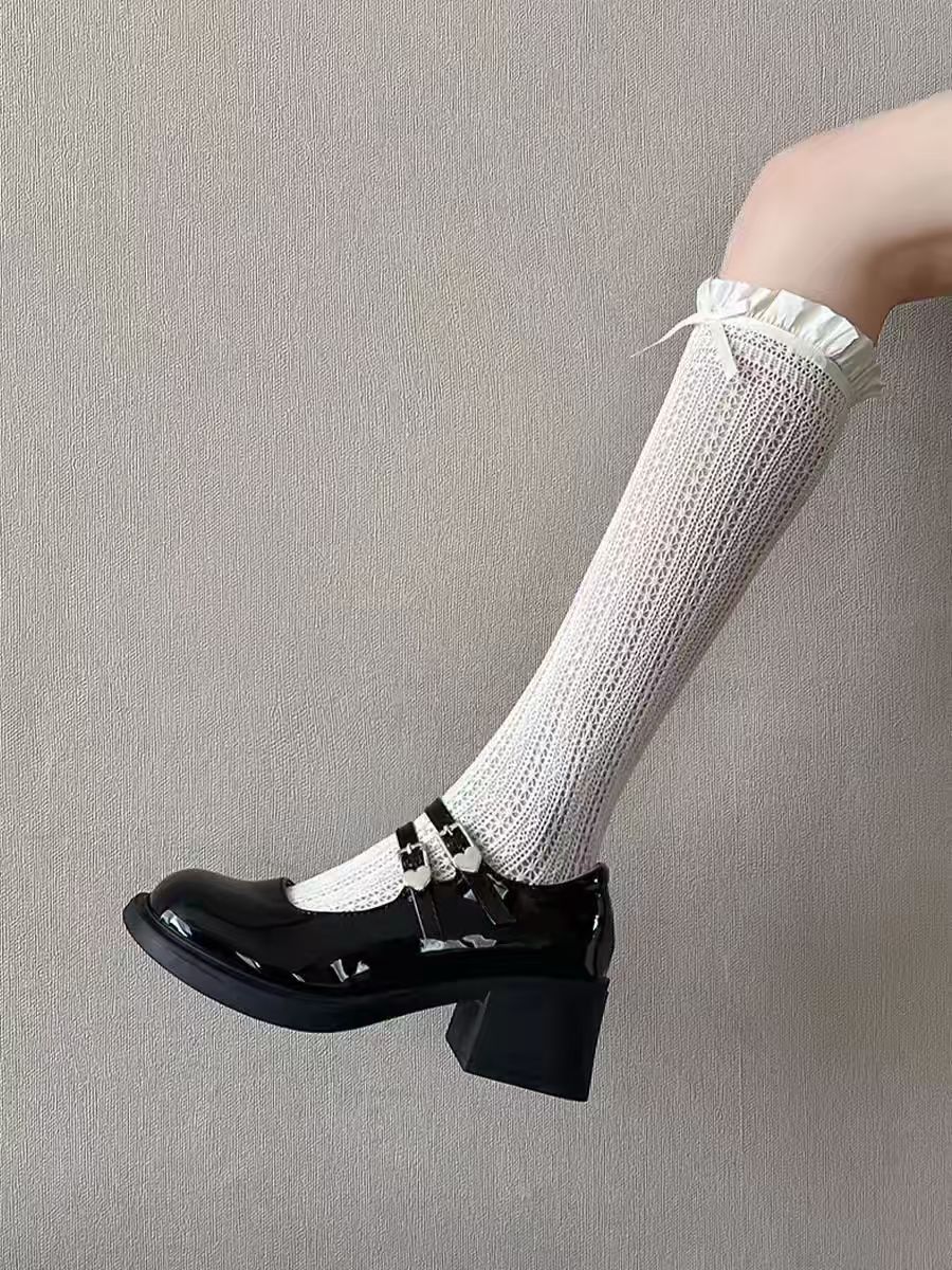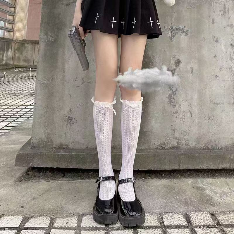 Calcetines de ballet fino con lazo "Broken Angel" Calcetines de malla con borde de encaje de verano de tubo medio para mujer