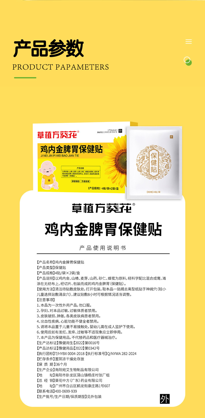 | Nombre del producto | Girasol - médico jianjian - pegatina de salud del bazo y el estómago de oro en el pollo |