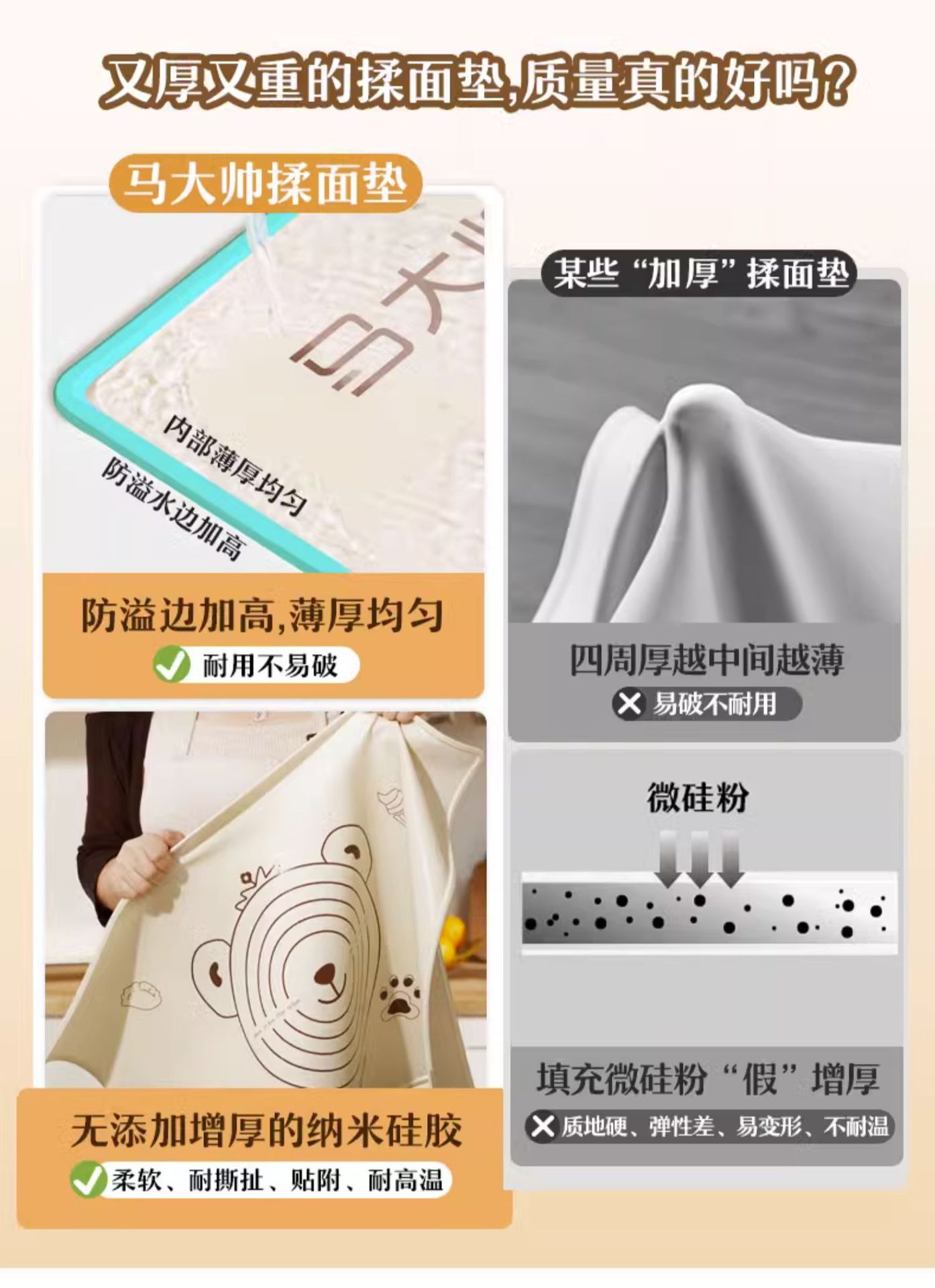 Ventas directas de fábrica Ma Dashuai almohadilla para amasar de silicona antiadherente de calidad alimentaria almohadilla para enrollar gruesa impermeable para el hogar
