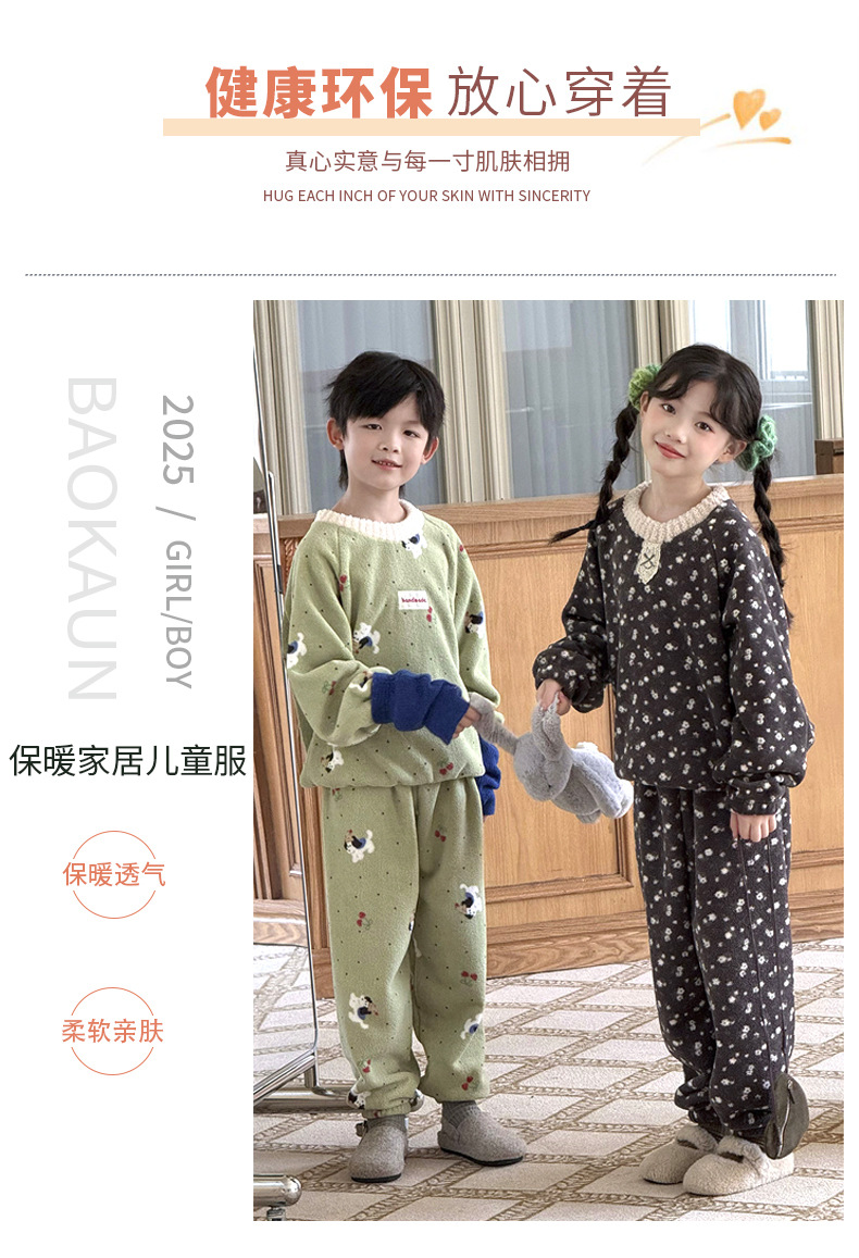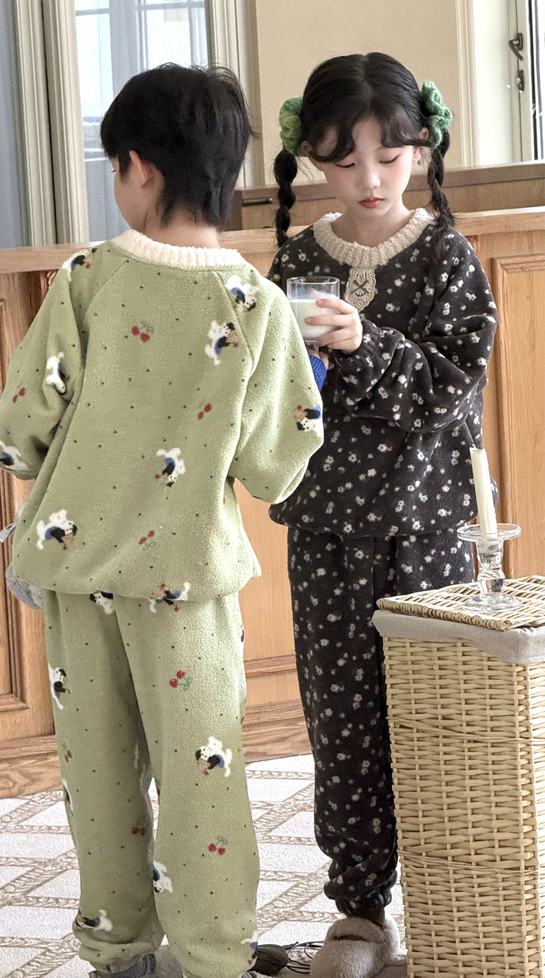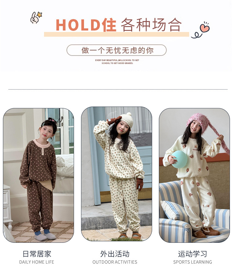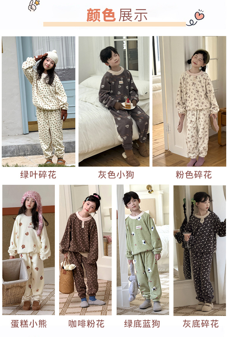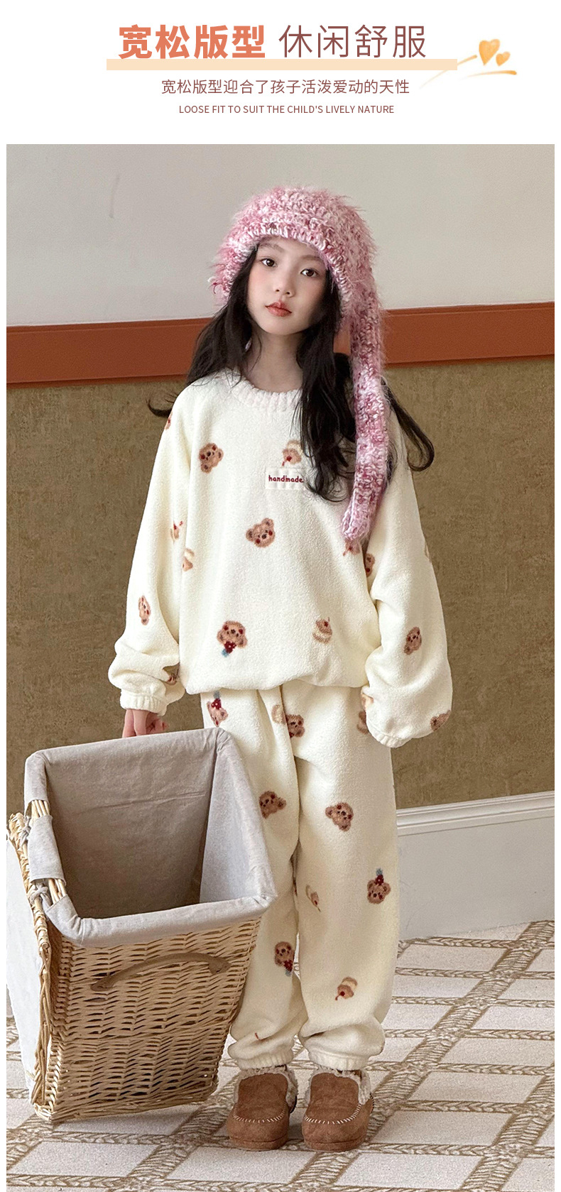 Niñas pijamas de invierno nuevos niños de invierno de lana de coral niñas pequeñas niños mayores gruesos ropa de franela