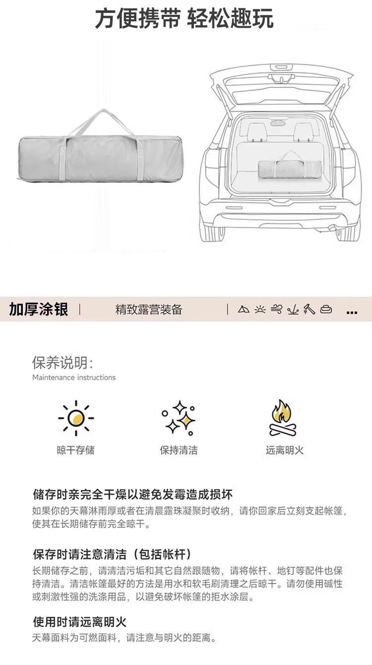 Campamento de vinilo al aire libre campamento tienda plegable protección solar a prueba de viento campamento de picnic carro lateral sombrilla picnic cortina solar
