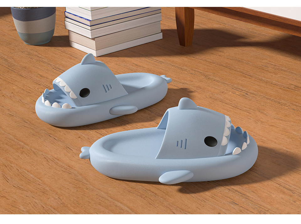 Nuevas zapatillas de tiburón primavera-verano zapatillas de tiburón anti olor caseras pareja zapatillas de sandalias EVA mujer
