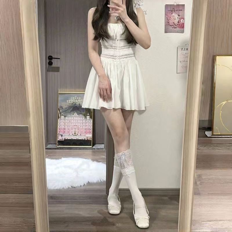 Japón blanco encaje calcetines de pantorrilla Lolita cinturón de cinta rodilla calcetines anti-deslizante