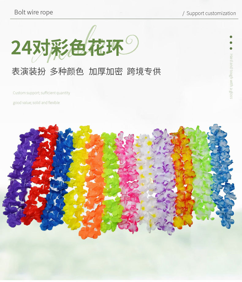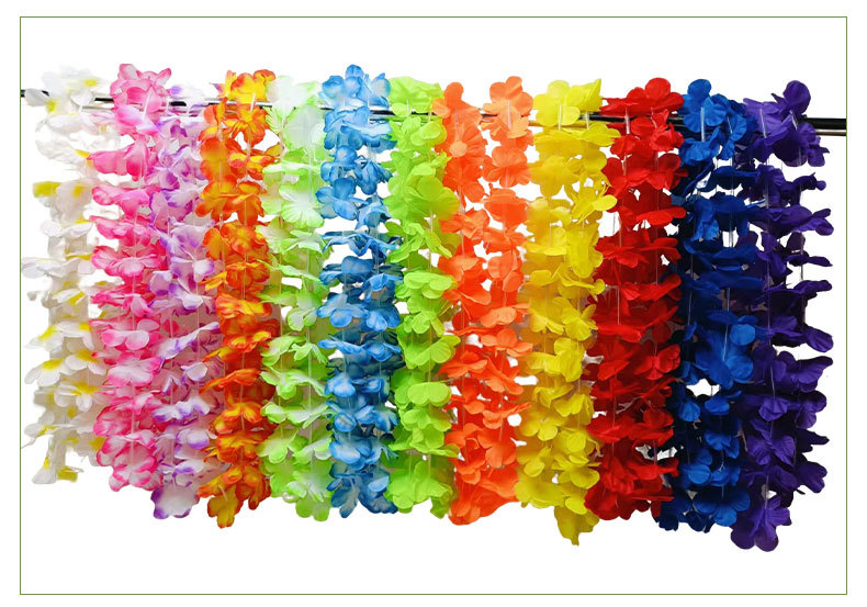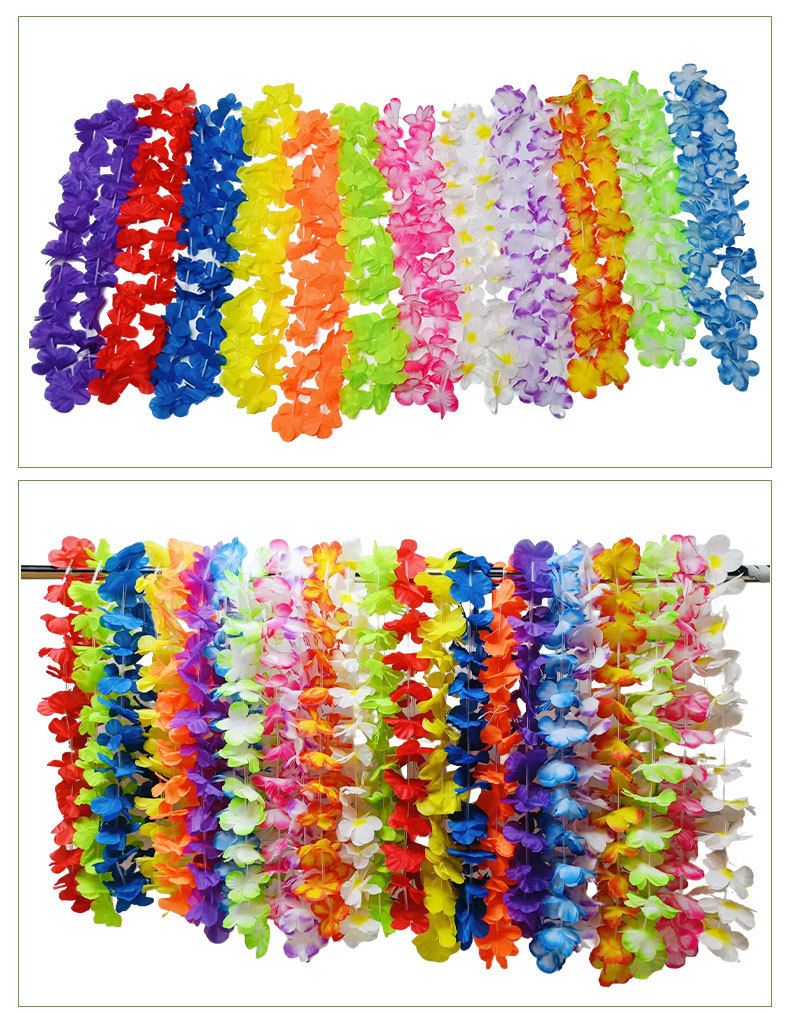 Hawai 24 coronas de flores colgantes de color colgantes de pétalos de flores de poliéster coronas de flores de cuello Fiesta de fiesta