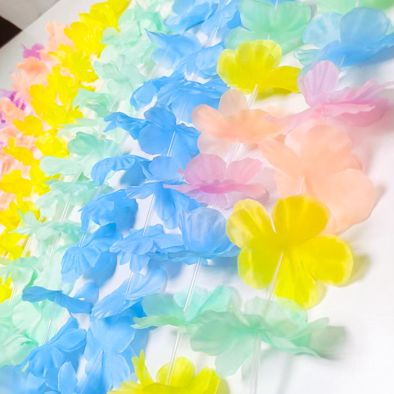 Hawaiian macaron corallas de color 24 pares de pétalos de tela rueda de color para eventos de espectáculo de la fiesta de gran corallas multicolores