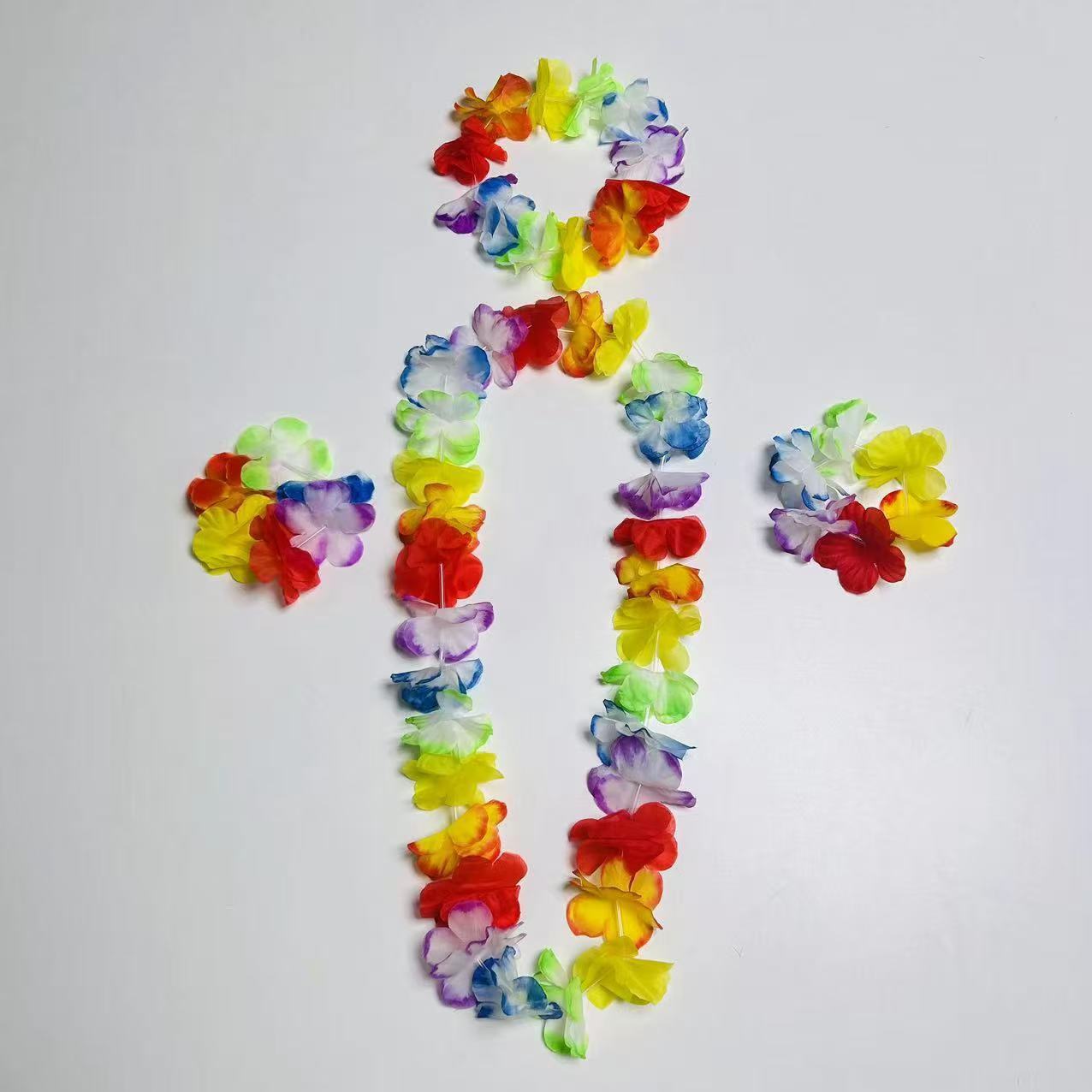 Hawaii 30 pares de guirnaldas de colores, 30 flores de cabeza, 12 flores de mano, 6 guirnaldas de espectáculo de fiesta