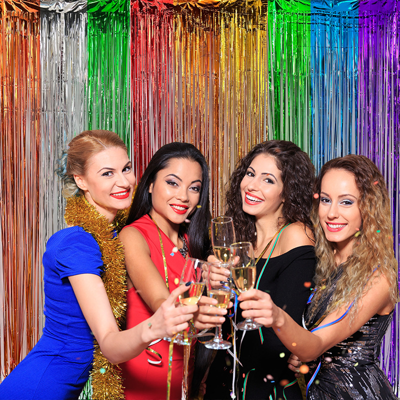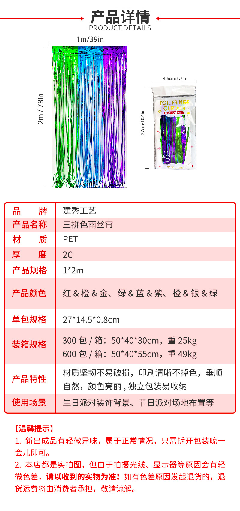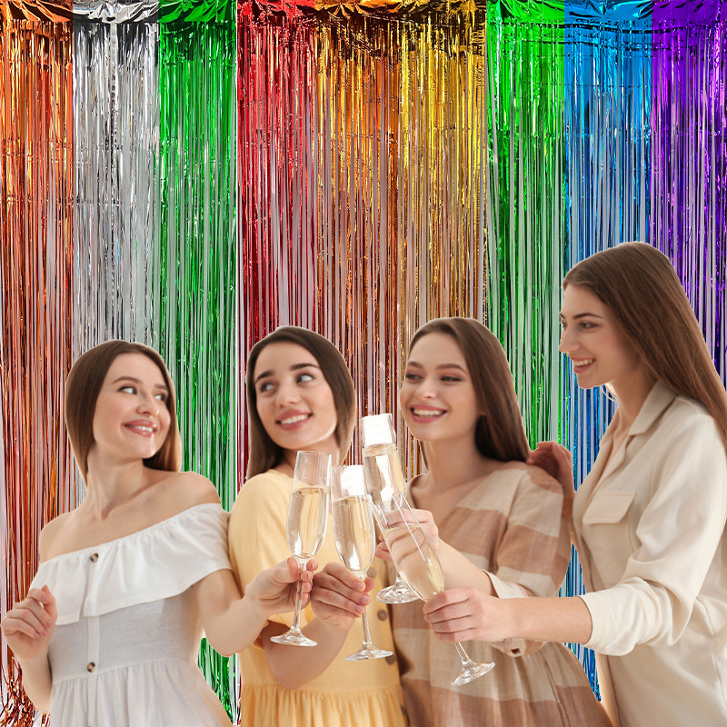 Amazon 2m fiesta de cumpleaños decoración borla cortina de seda de lluvia color mágico día de San Valentín tres piezas de luz plana costura cortina de seda de lluvia