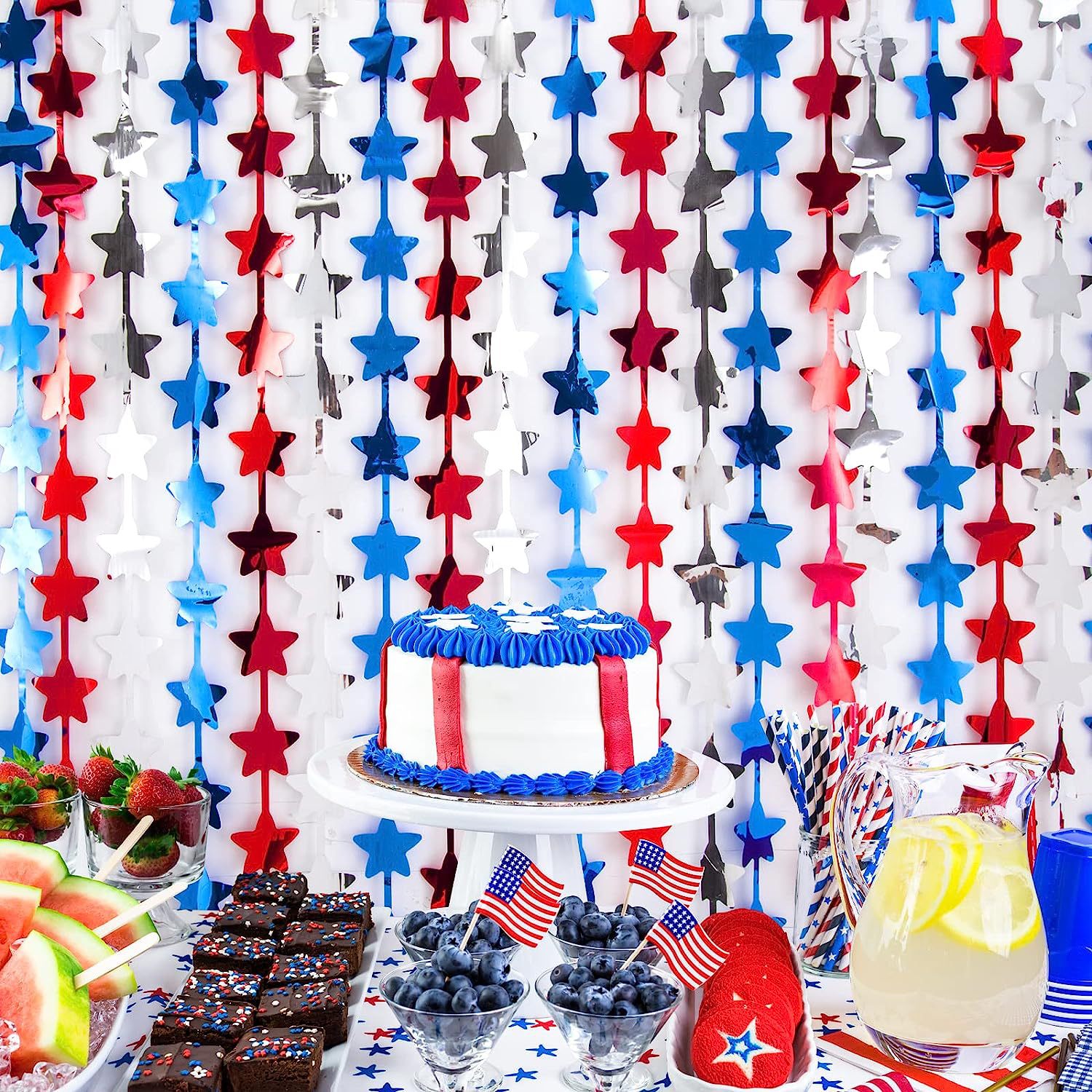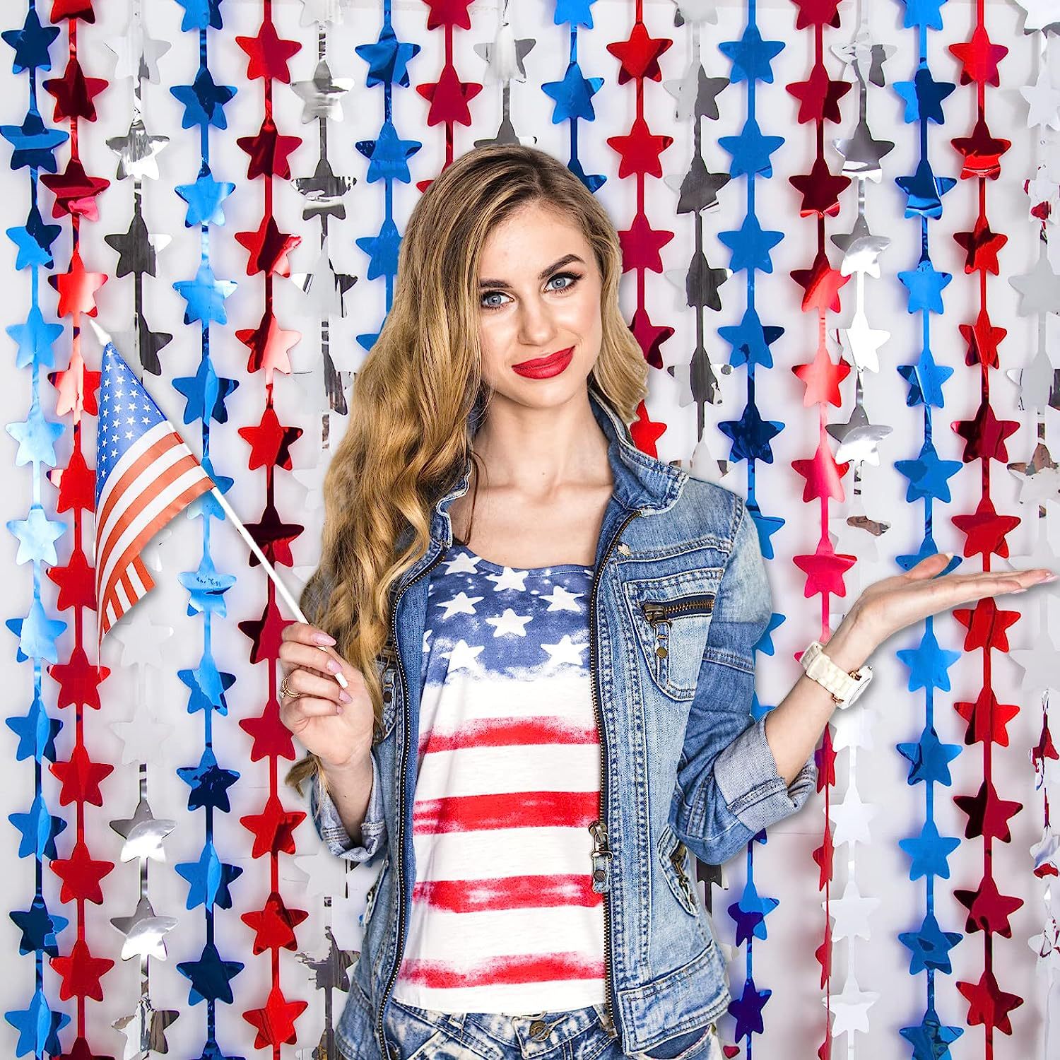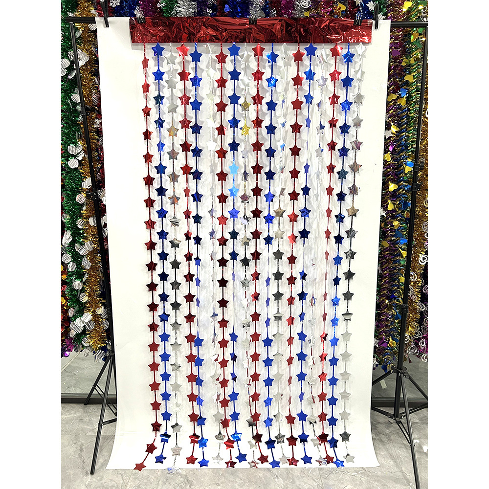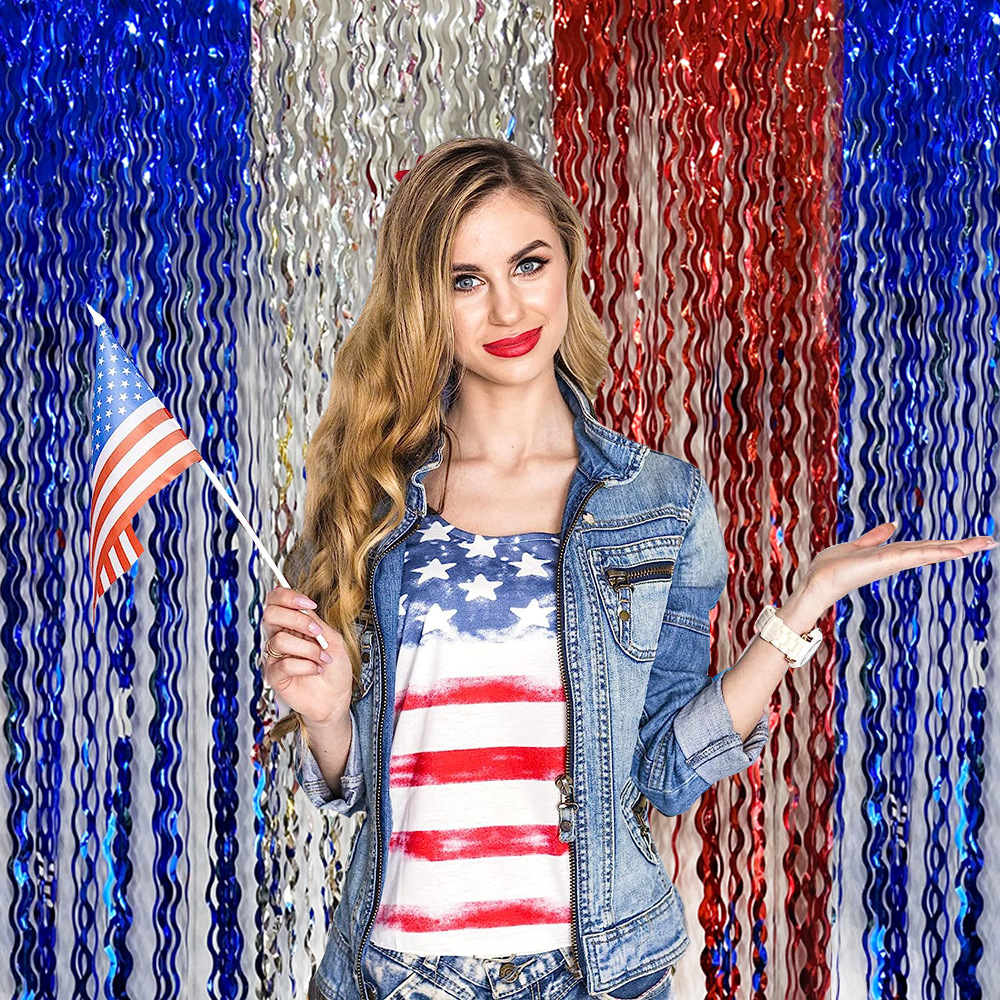 Día de la independencia transfronteriza de EE. UU. Cortina de lluvia colorida suministros de decoración de fiesta Cortina de lluvia de cimitarra de onda brillante