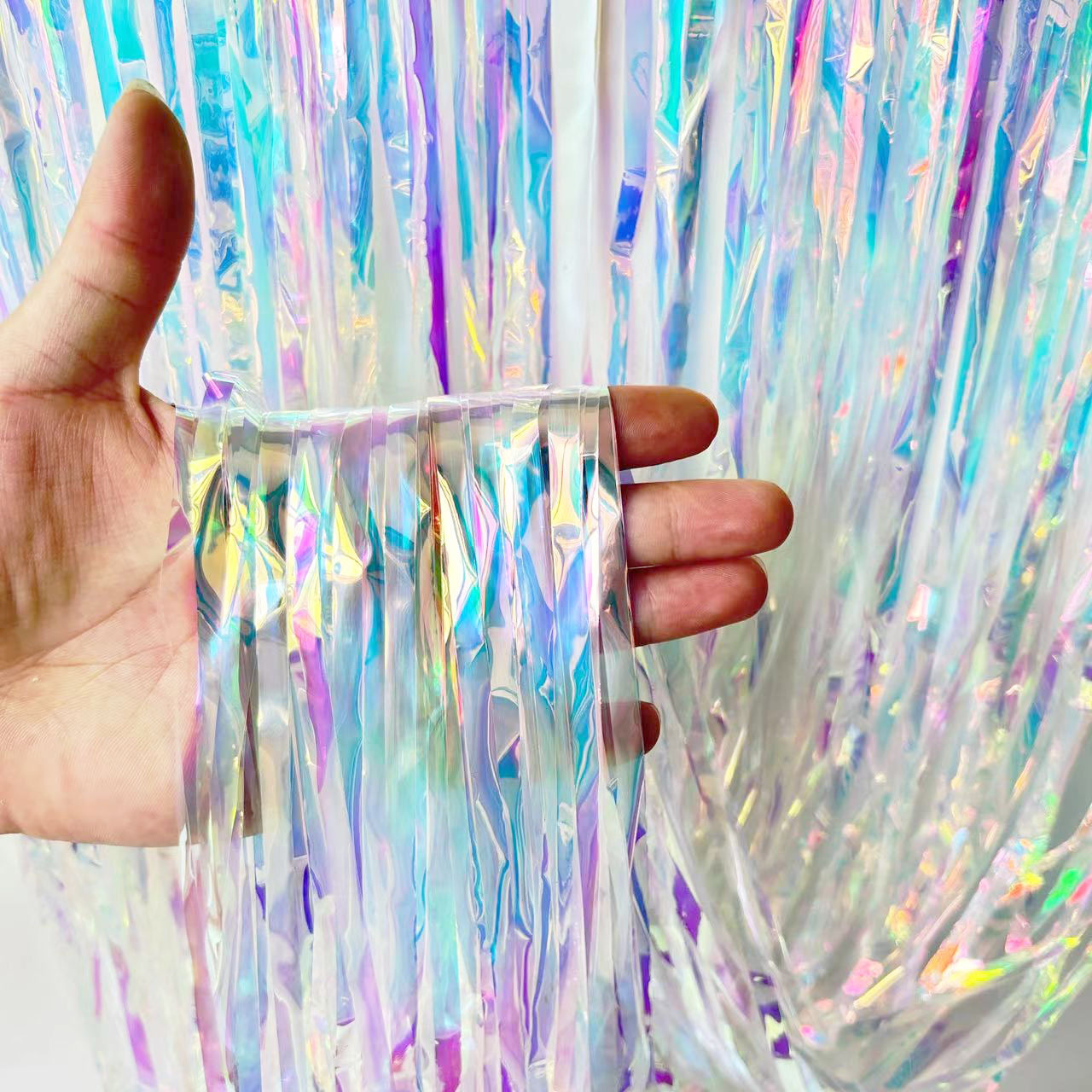 Amazon fiesta cumpleaños boda Fondo decoración de la pared colorida lluvia de seda colorida luz dorada lluvia cortina de seda cinta
