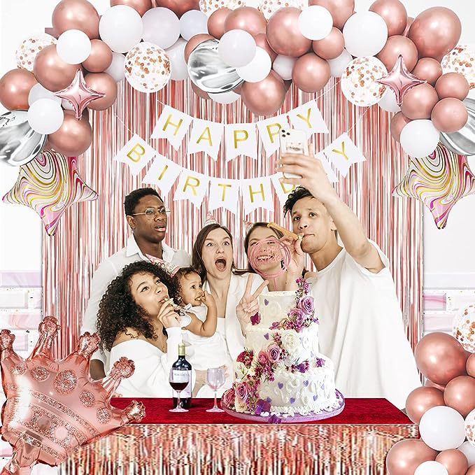 Amazon fiesta decoración globo traje Venta caliente lluvia cortina de seda tire bandera globo oro cumpleaños globo traje