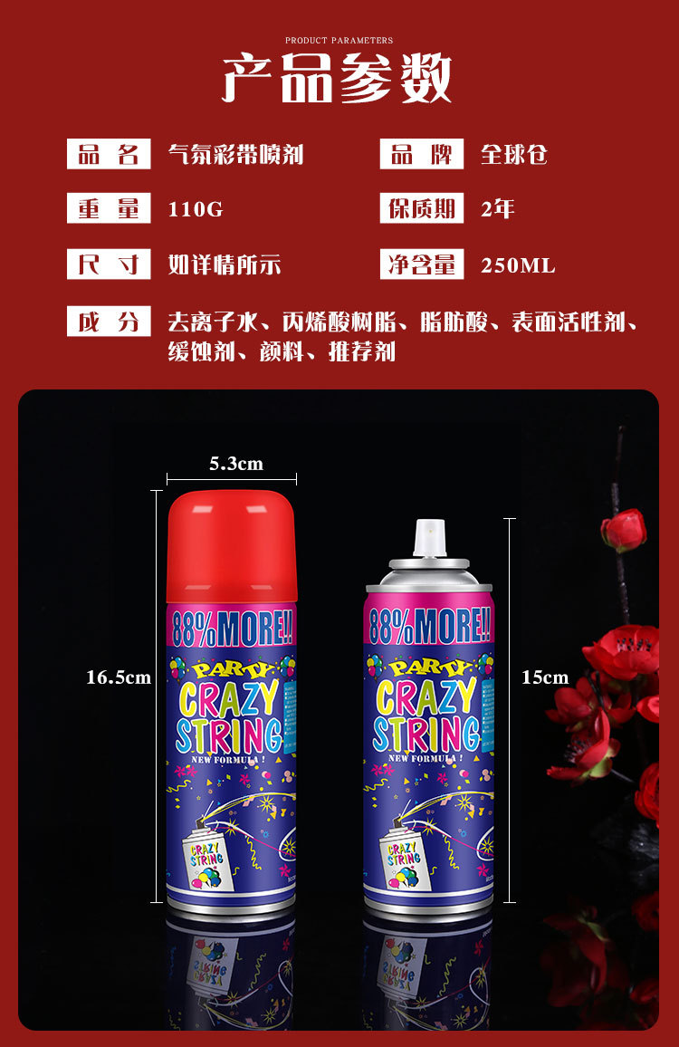 Granja global de cinta de color spray fiesta de cumpleaños con latas de mano de color de color de color de color de la decoración de la boda de la fiesta de Navidad