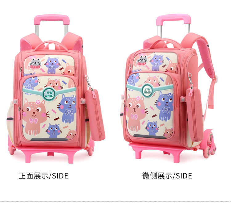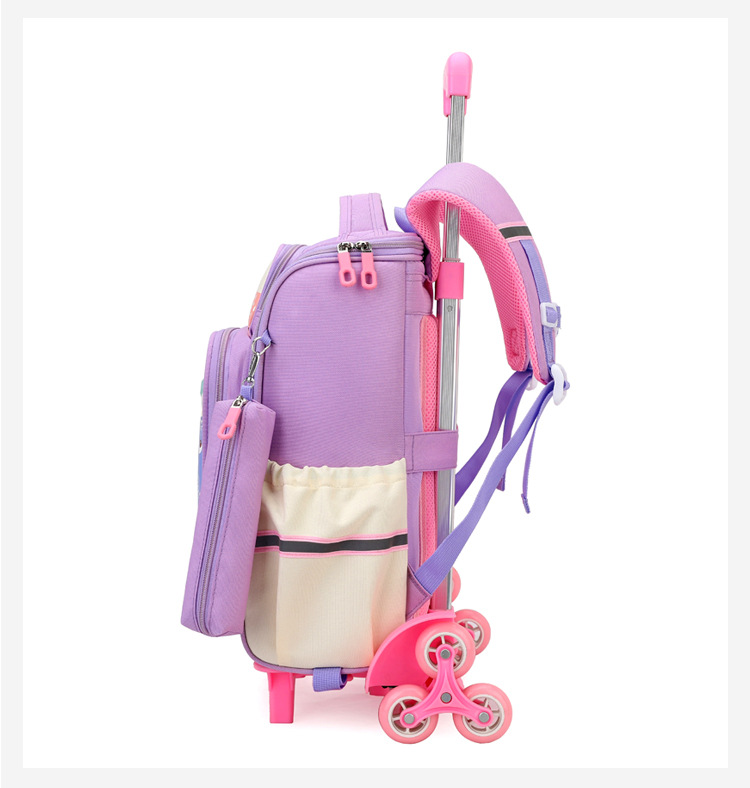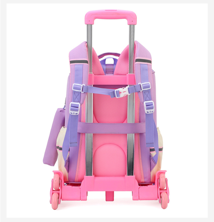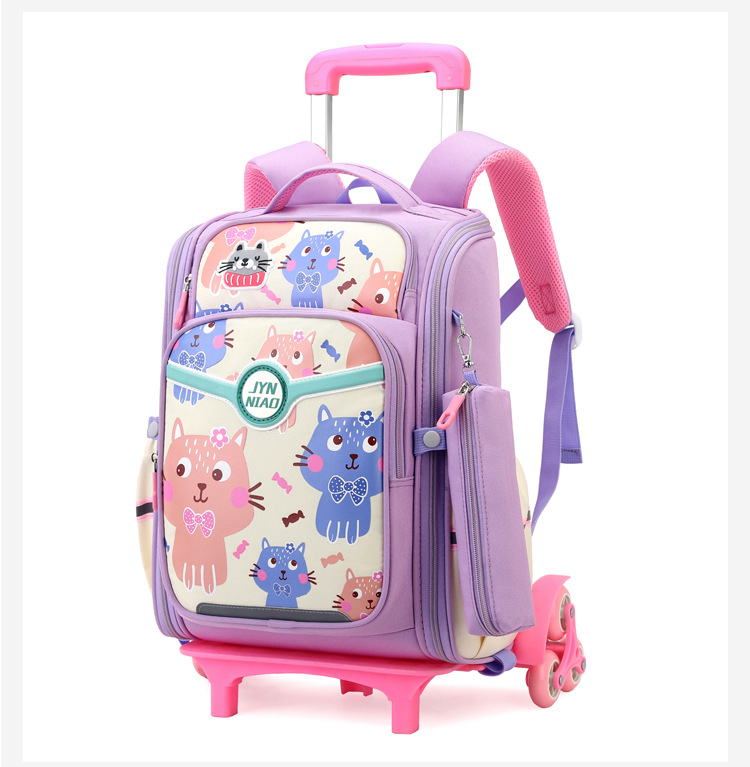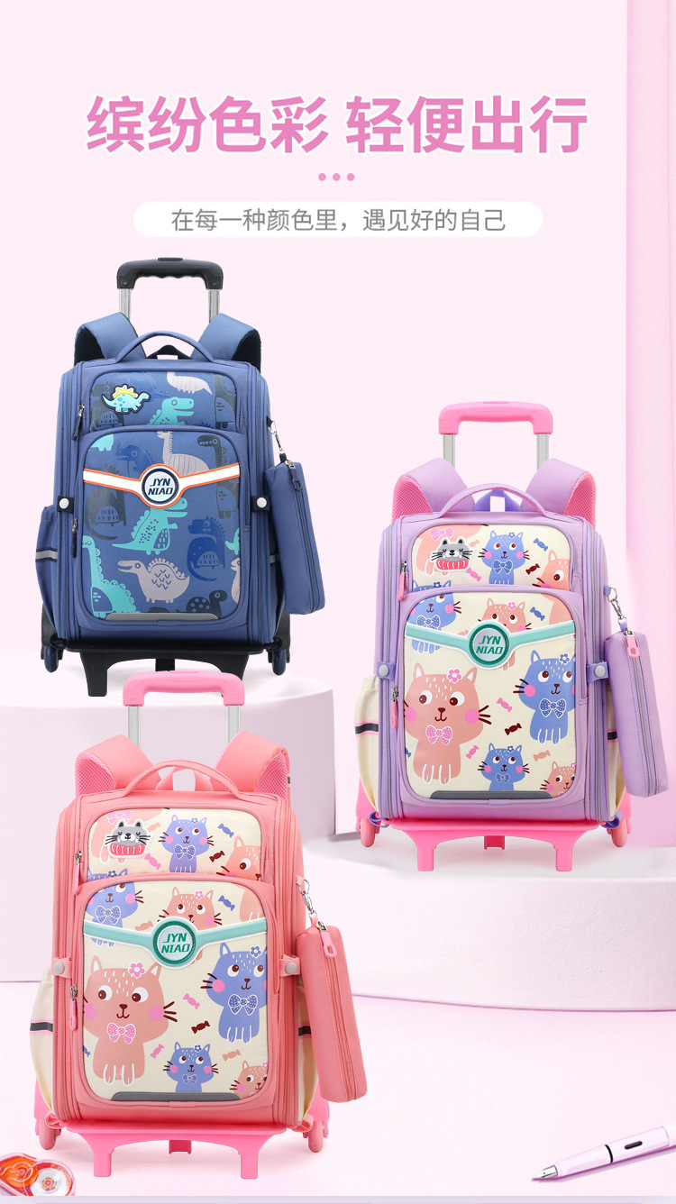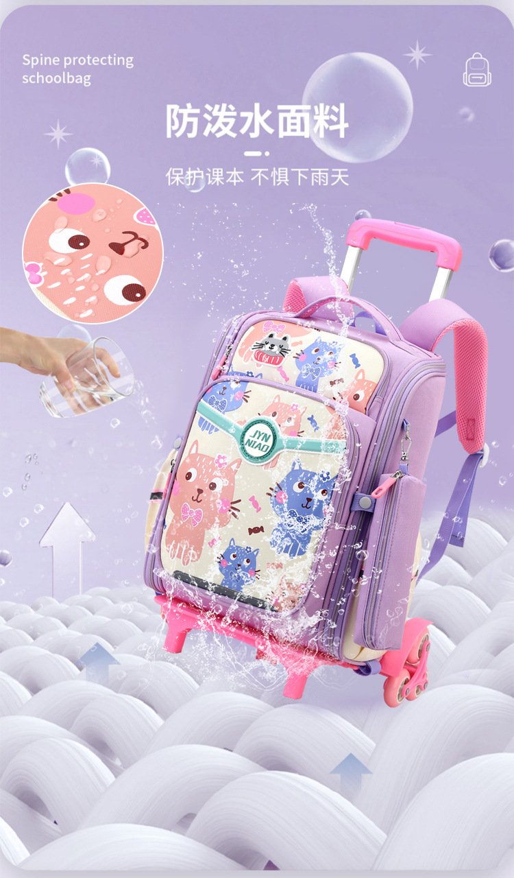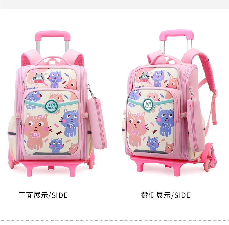 Trolley de entrega de pescado natural bolsa de escuela primaria femenina grado 3, 4, 5 mochila ligera escalera de seis ruedas escalada transfronteriza