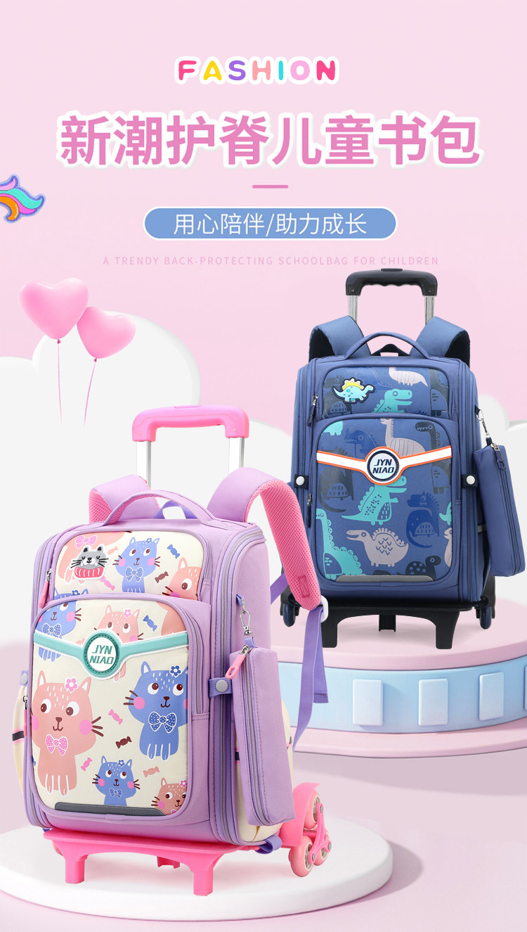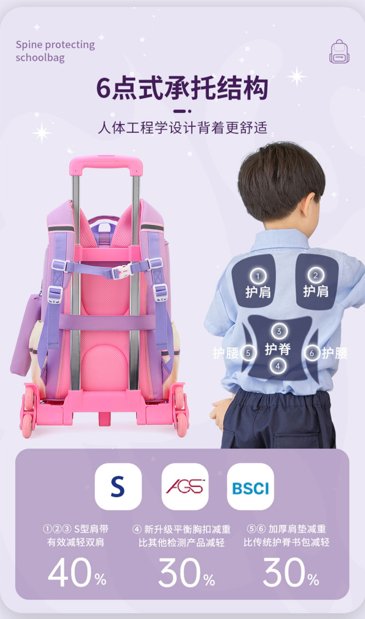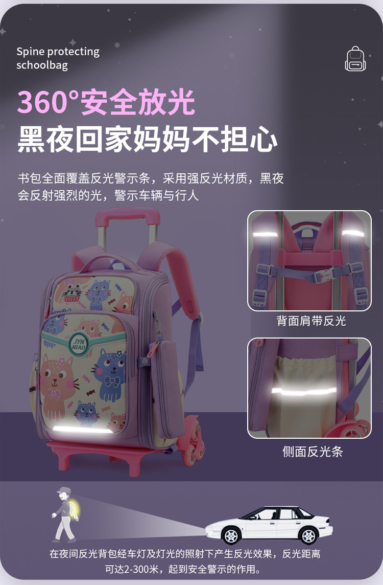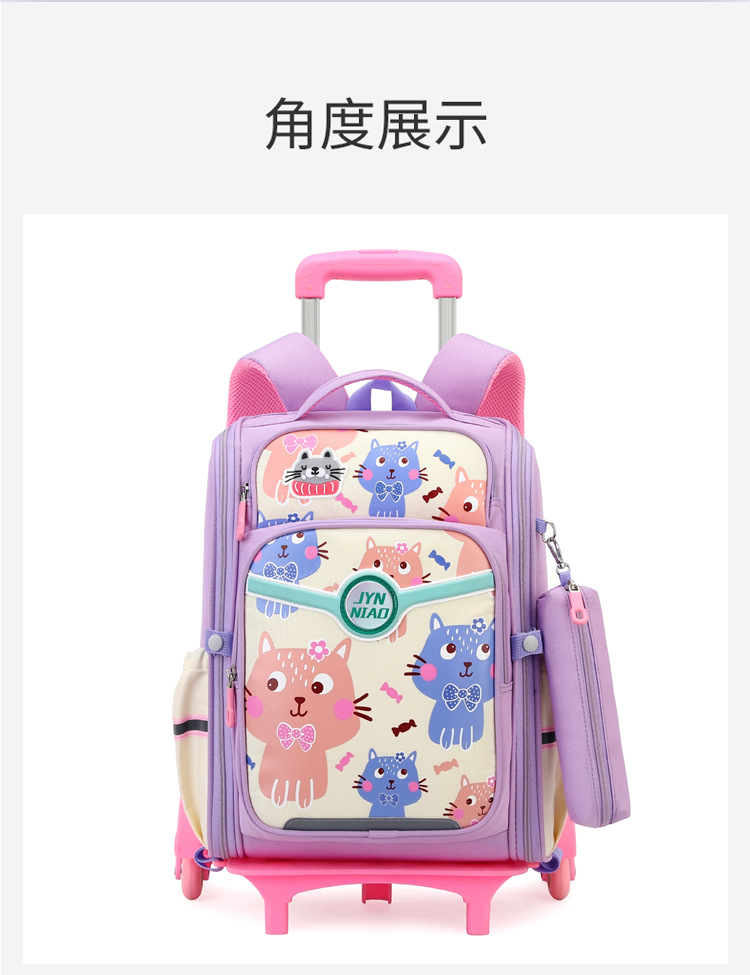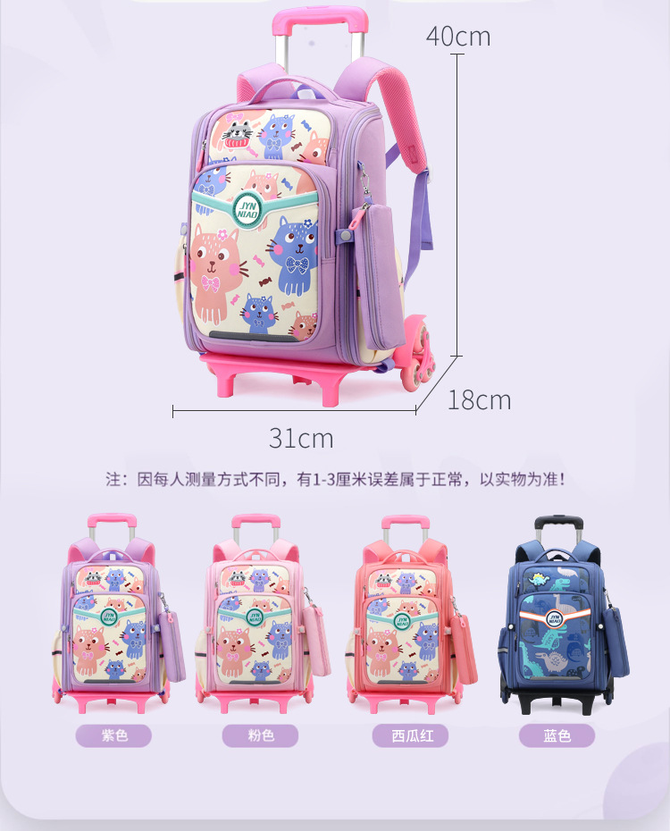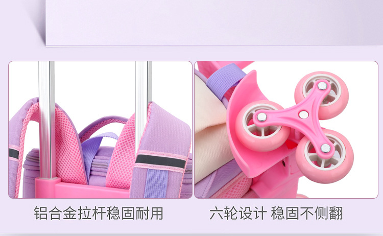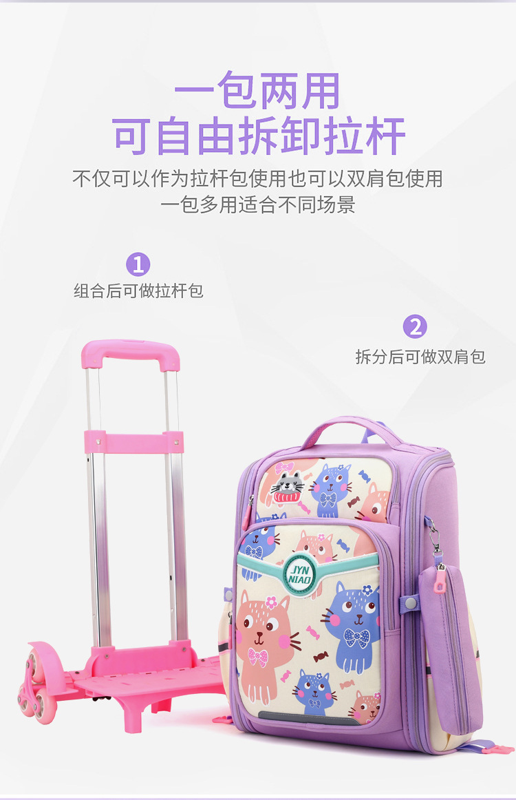 Trolley de entrega de pescado natural bolsa de escuela primaria femenina grado 3, 4, 5 mochila ligera escalera de seis ruedas escalada transfronteriza