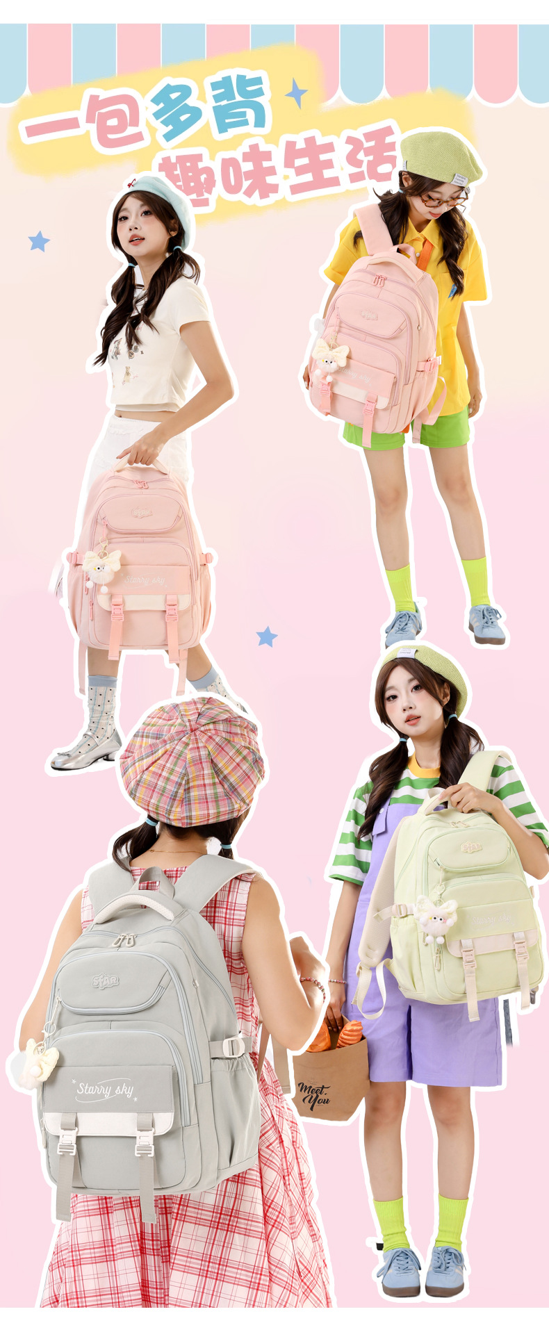 Nueva mochila escolar casual coreana para estudiantes de primaria 3 - 6 grados, mochila de estudiantes de secundaria ligera y de gran capacidad