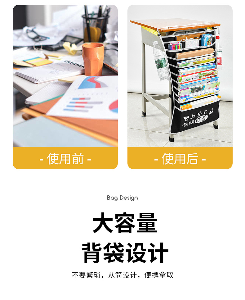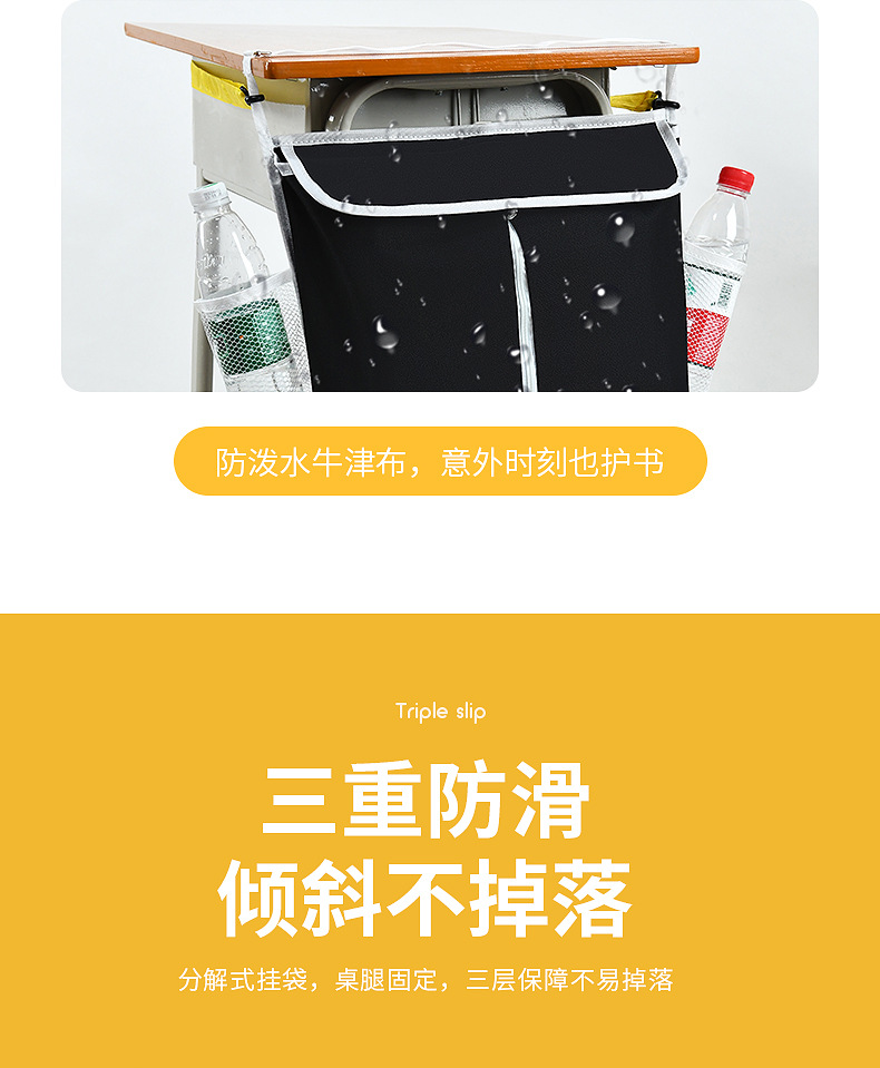 Bolsa de libro colgante de escritorio escolar de gran capacidad gruesa de escritorio de estudiantes lateral bolsa de almacenamiento de libros de estudiantes de secundaria y secundaria