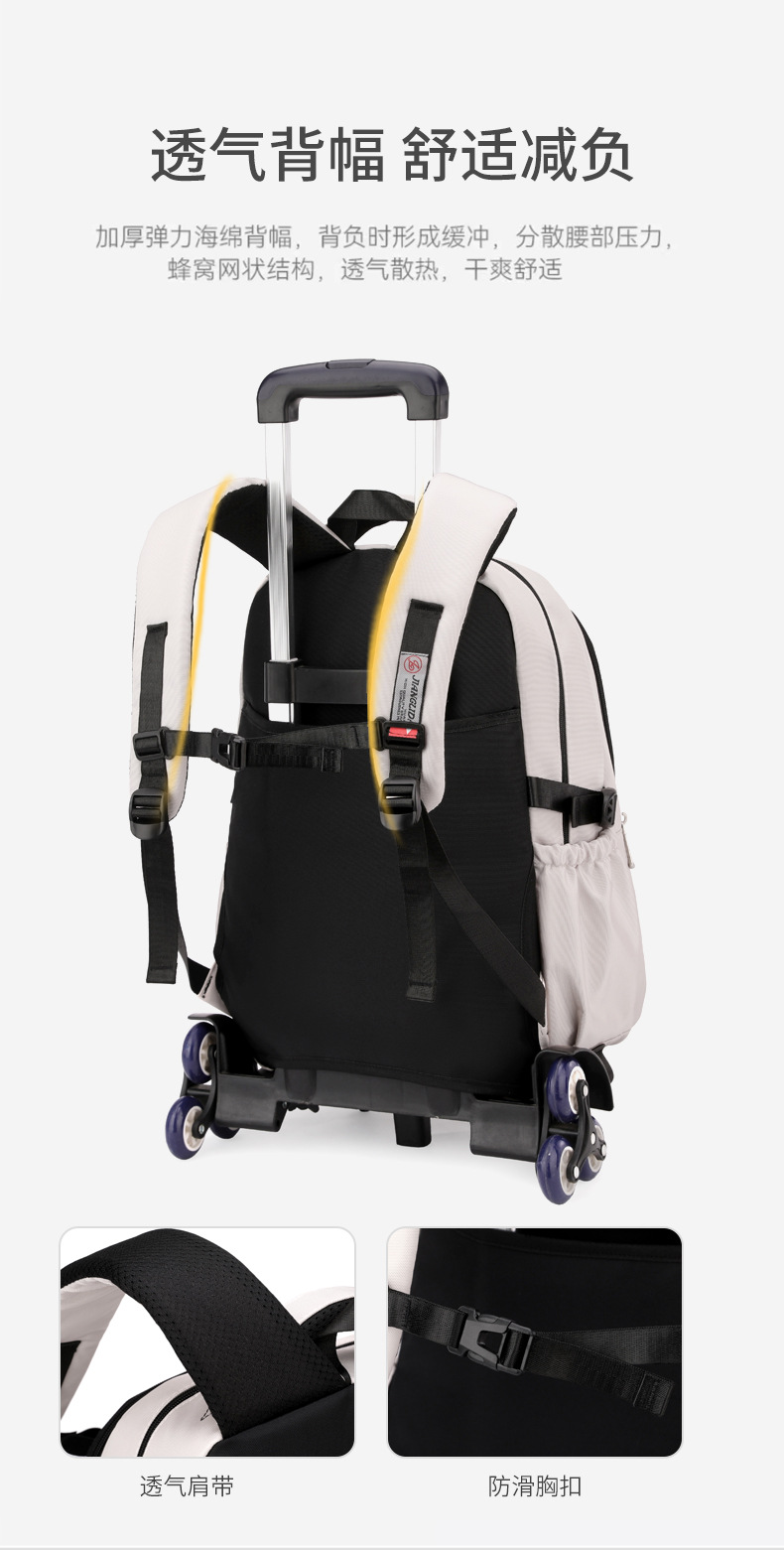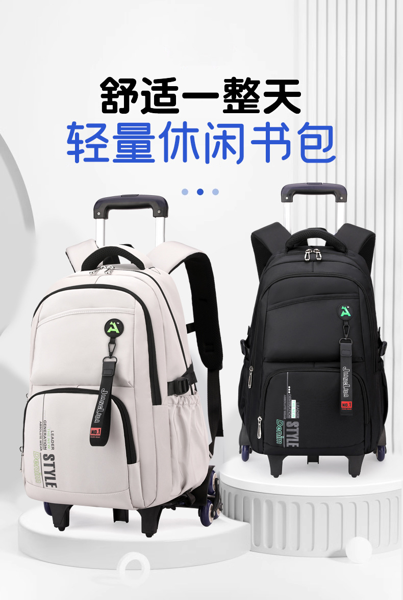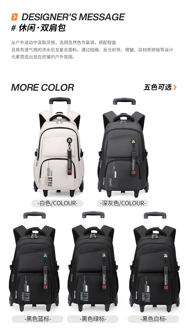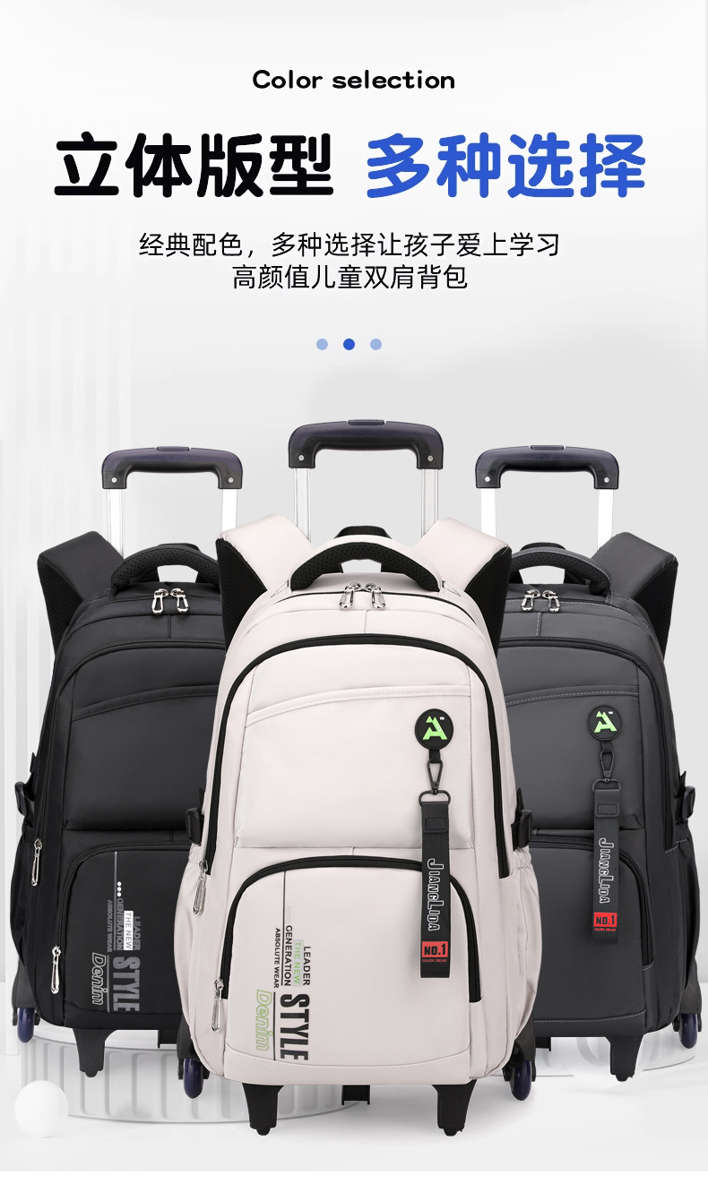 Escuela de escuela primaria transfronteriza de pescado natural, mochila escolar con barra de ruedas para niños y niñas, mochila desmontable con reducción de carga de gran capacidad de color sólido