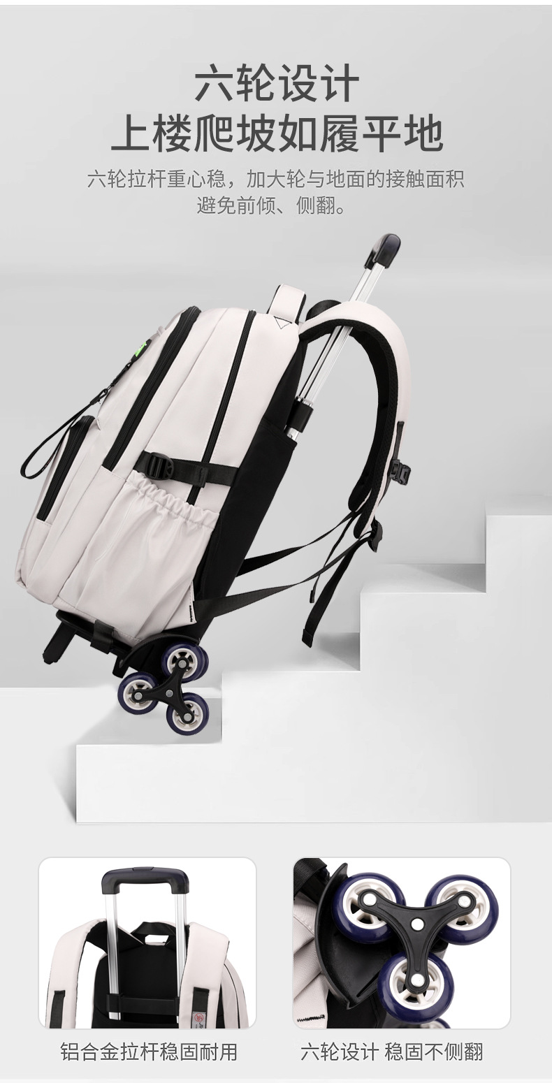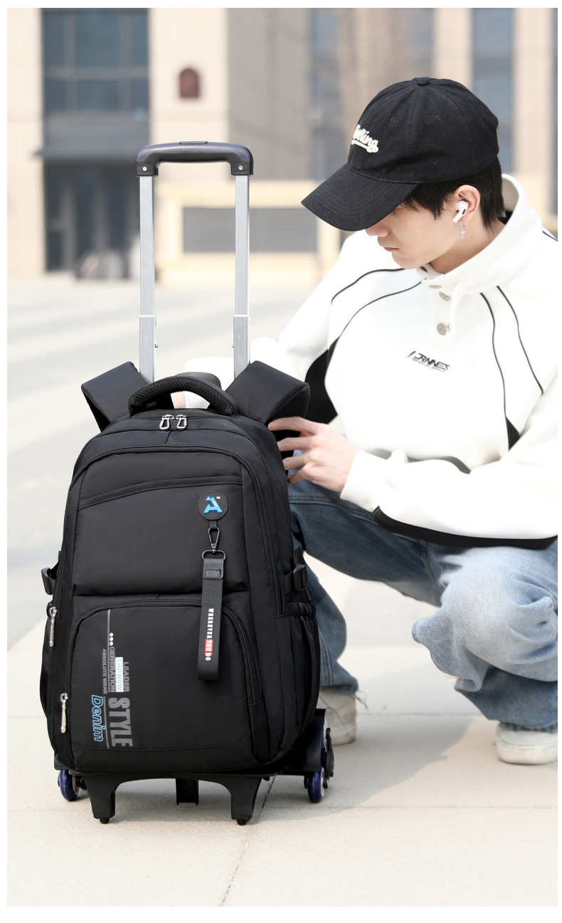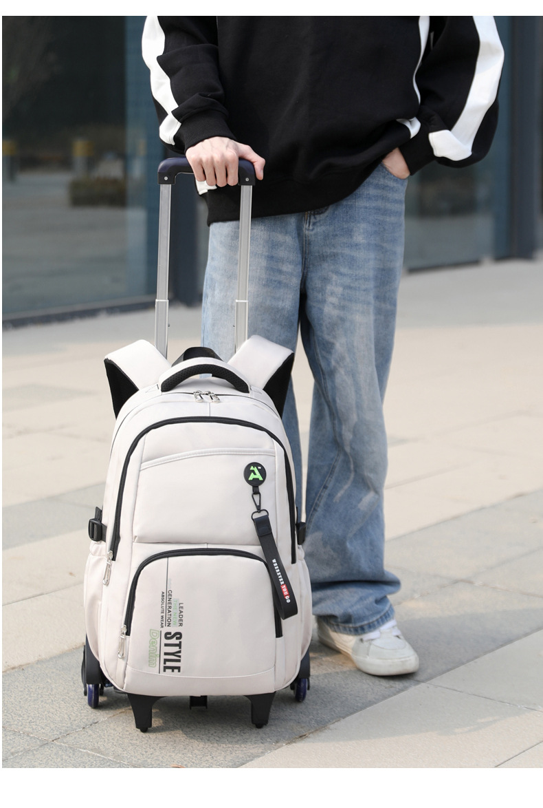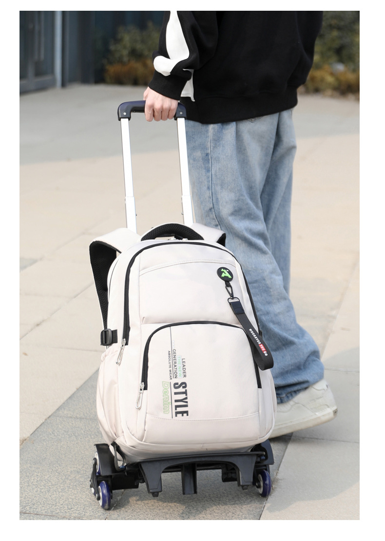 Escuela de escuela primaria transfronteriza de pescado natural, mochila escolar con barra de ruedas para niños y niñas, mochila desmontable con reducción de carga de gran capacidad de color sólido