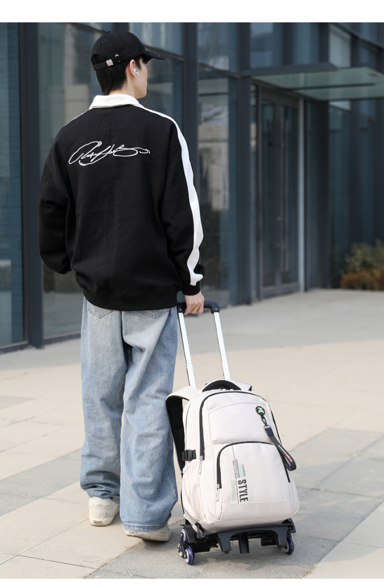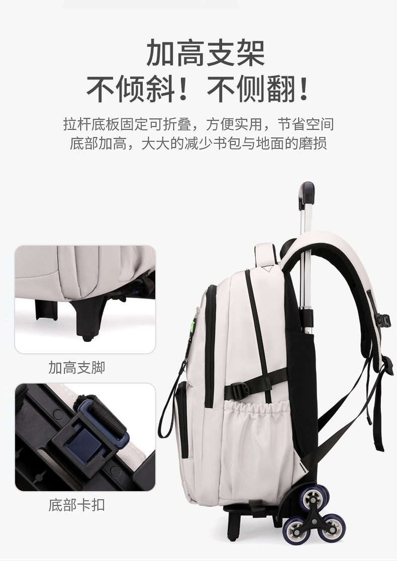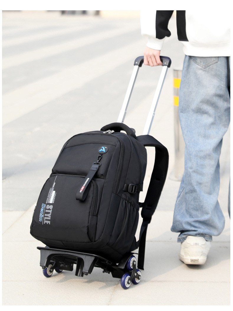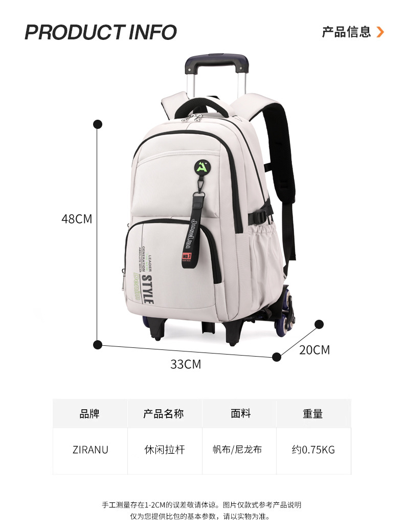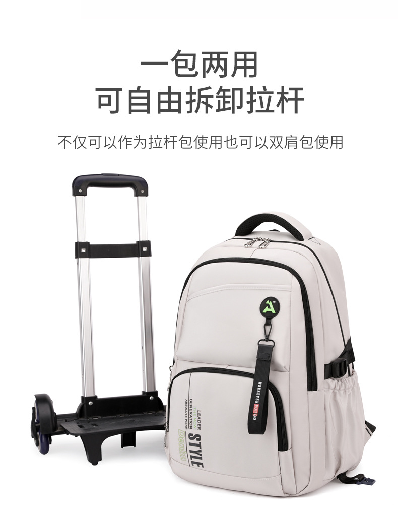 Escuela de escuela primaria transfronteriza de pescado natural, mochila escolar con barra de ruedas para niños y niñas, mochila desmontable con reducción de carga de gran capacidad de color sólido
