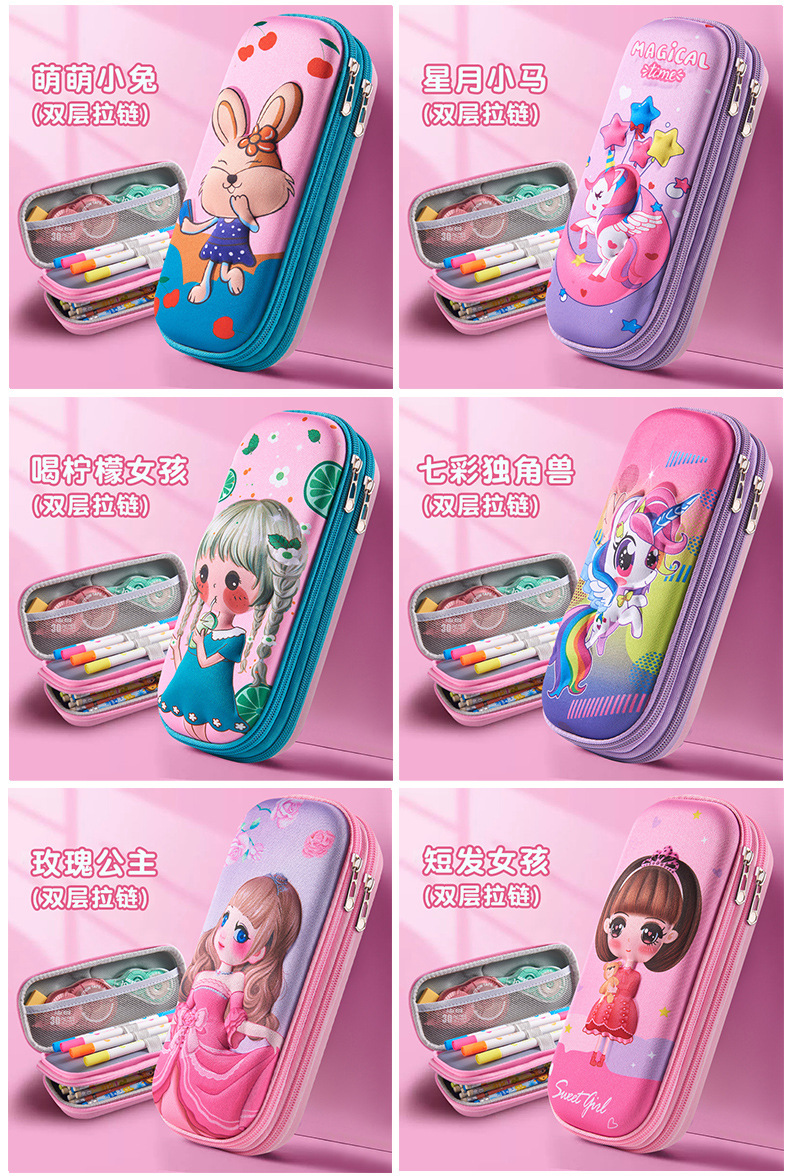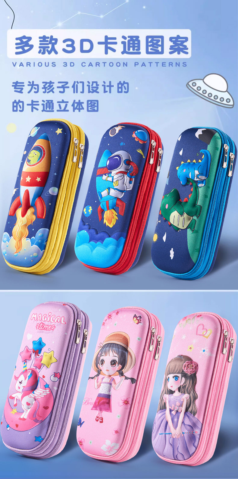 26 nueva caja de lápiz 3D de cremallera de doble capa de estudiantes de primaria gran capacidad bolsas de papelería para niños bolsas de lápiz para niñas caja de papelería