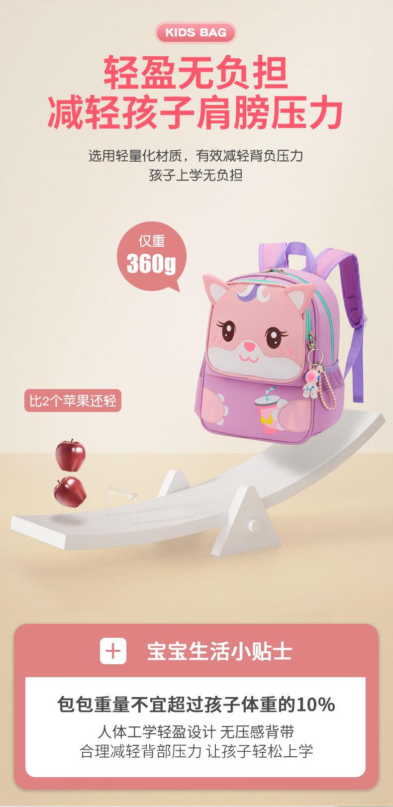 Ligero lindo niños y niñas reducción de la Carga Protección de la columna vertebral Generación de pelo Natural Fish nueva mochila infantil kindergarten (Bao Xiaobao)
