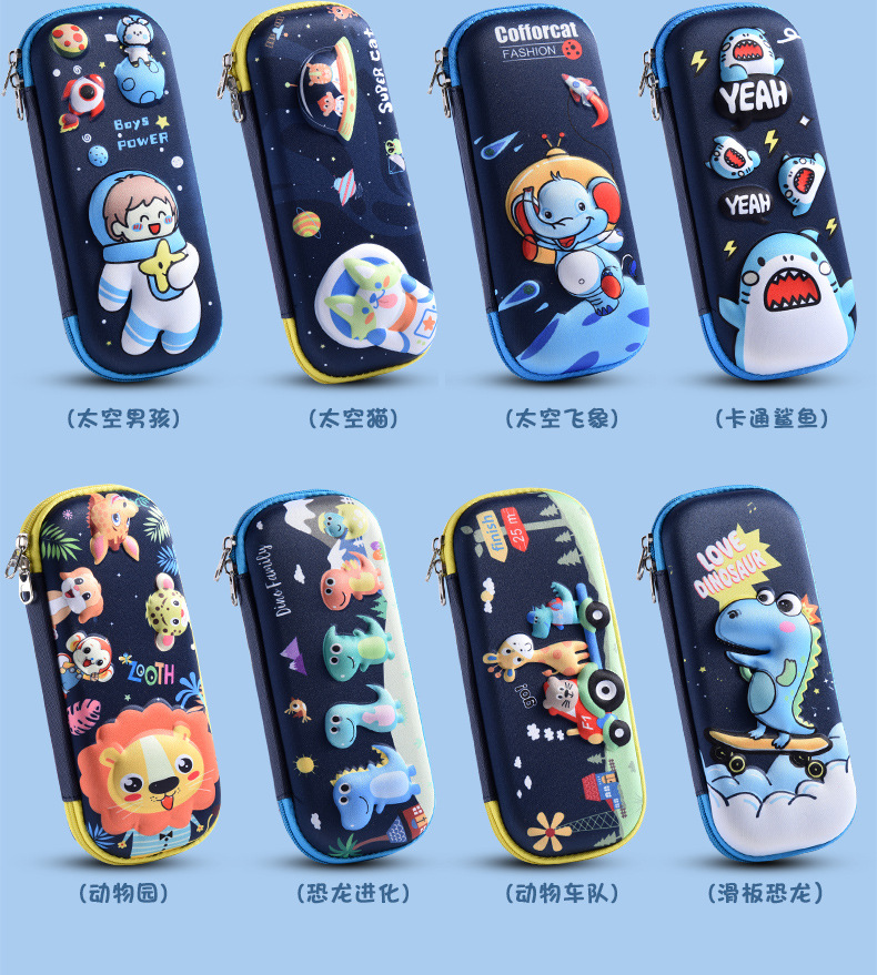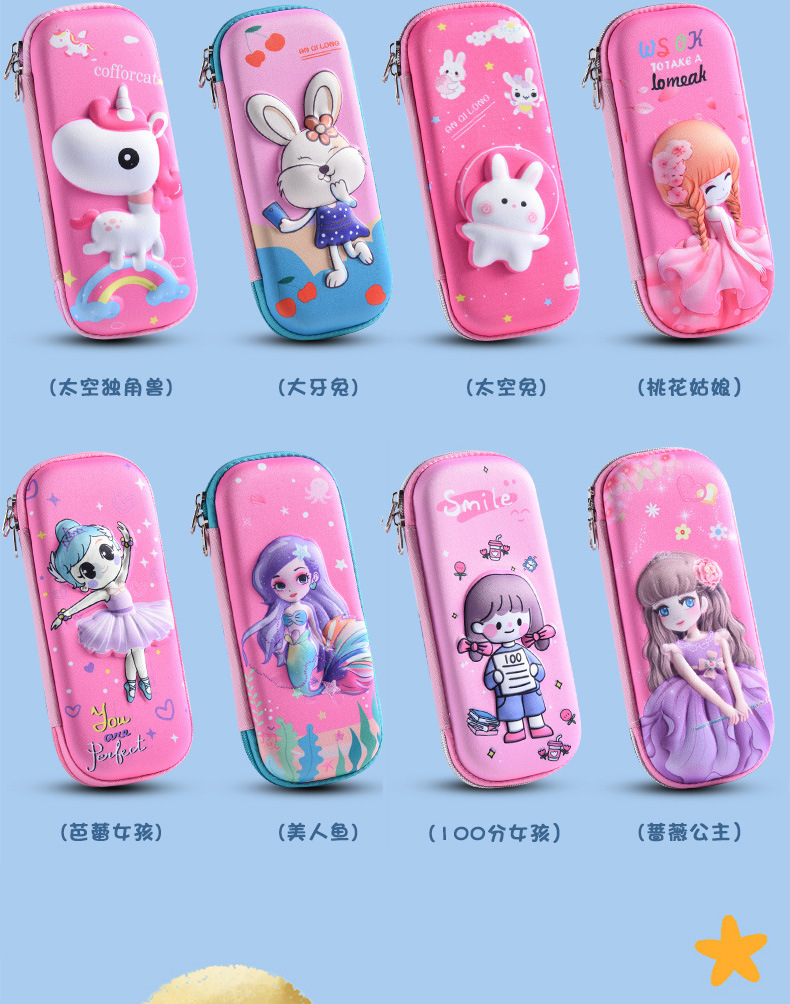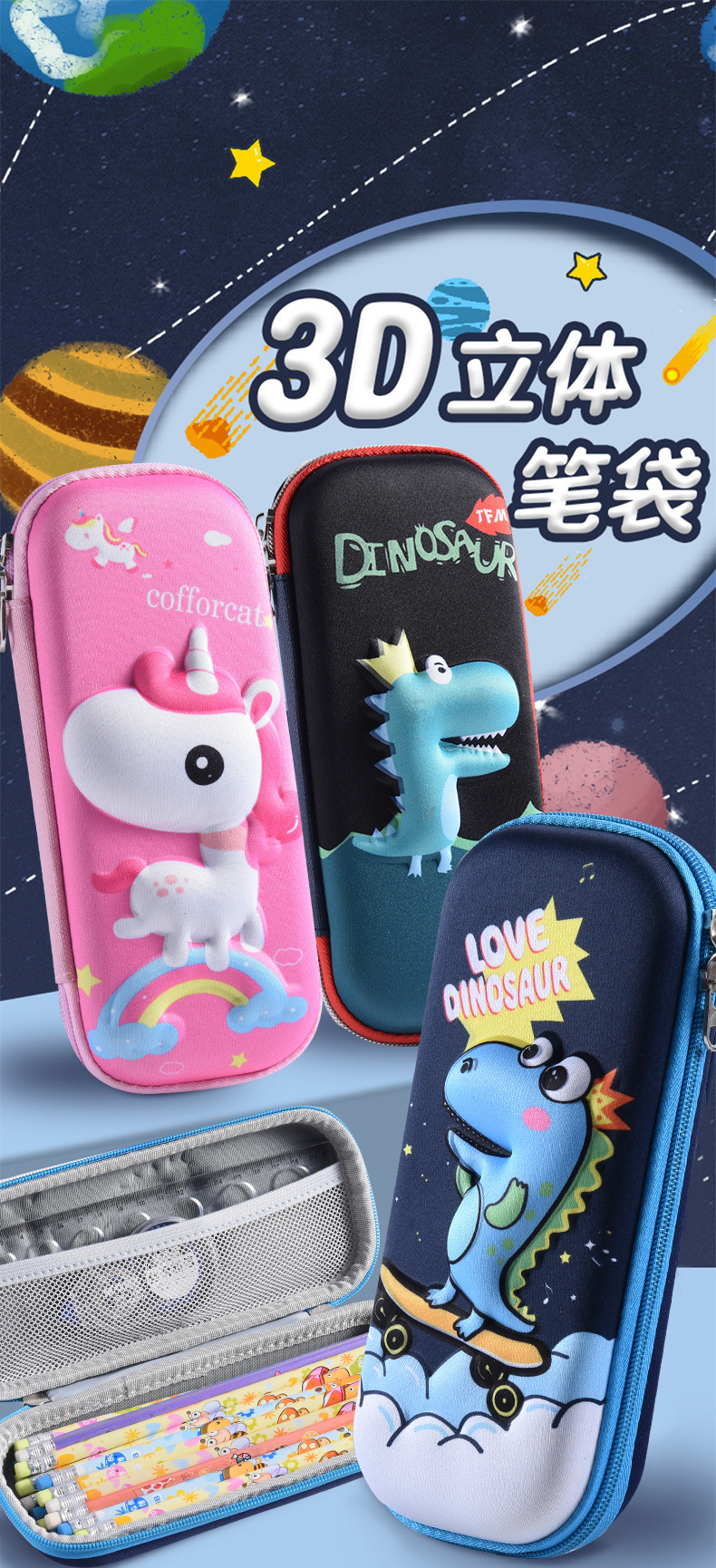 Nueva caja de lápiz de cremallera de doble capa para niños caja de papelería 3D para niños y niñas de gran capacidad de dibujos animados lindos bolsas de lápiz para estudiantes de primaria