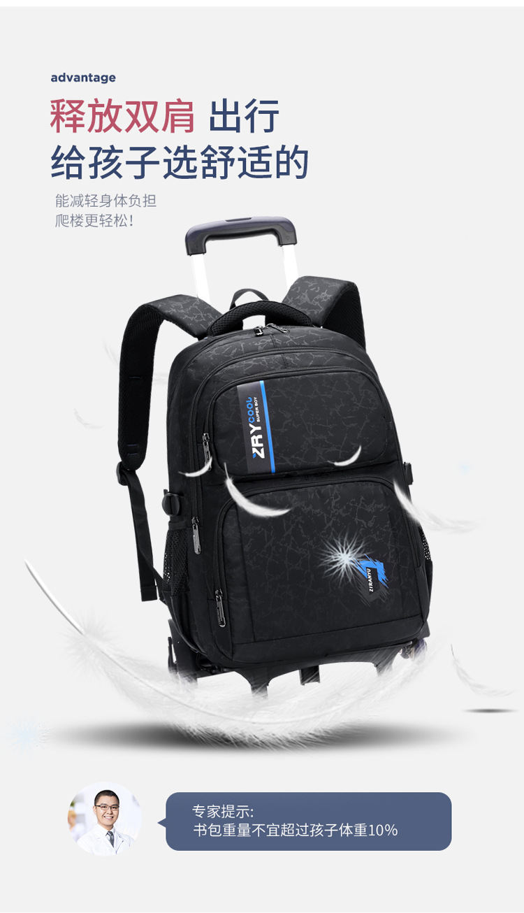 Exportación de escaleras de escalada, bolsas de tirón para estudiantes, mochila con ruedas para estudiantes de secundaria, mochila de sexto grado