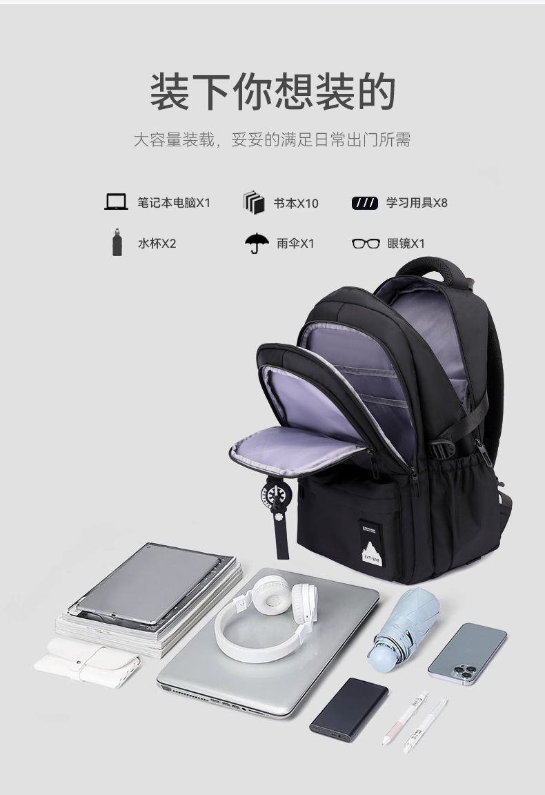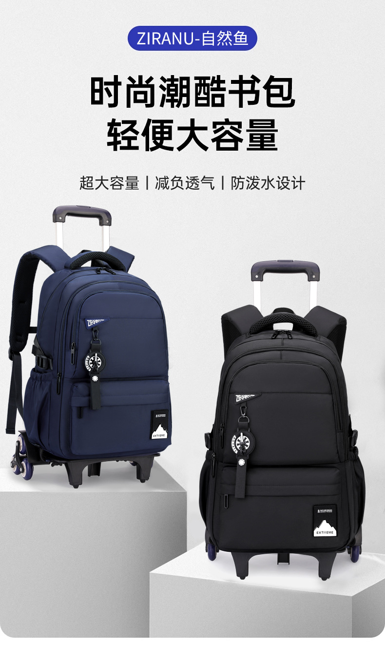 Mochila escolar con barra de tracción de moda de pescado natural transfronterizo Mochila escolar para estudiantes de secundaria y preparatoria de gran capacidad para hombres