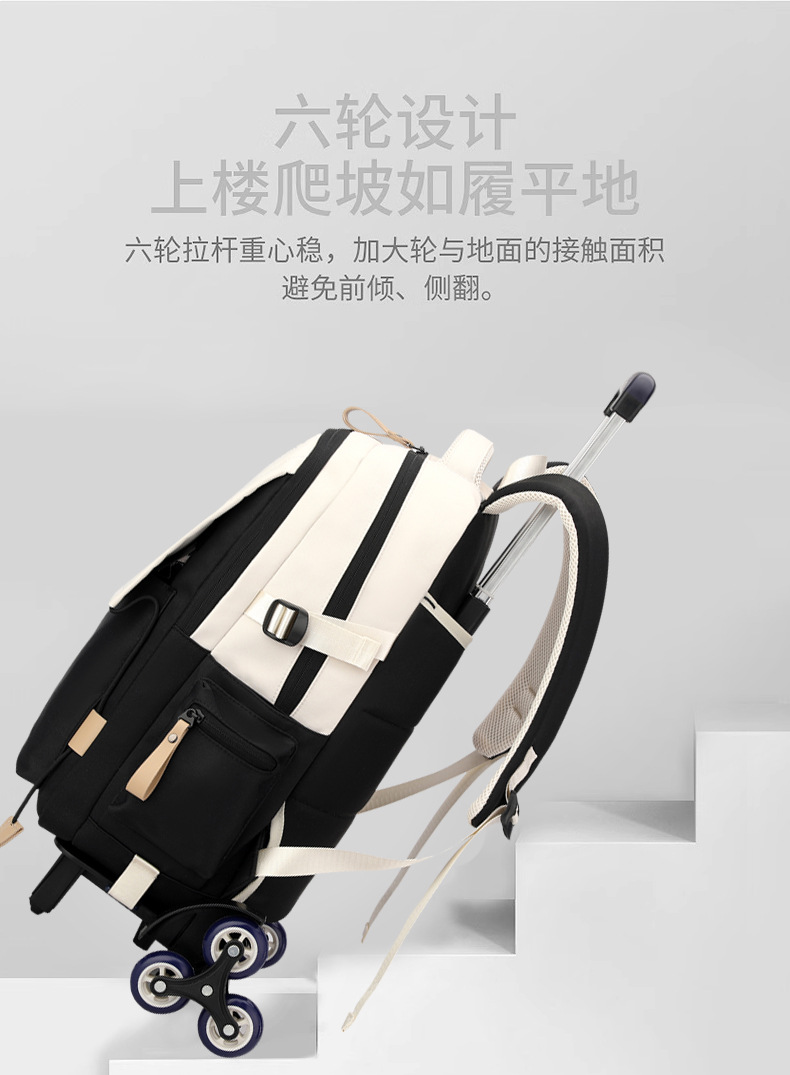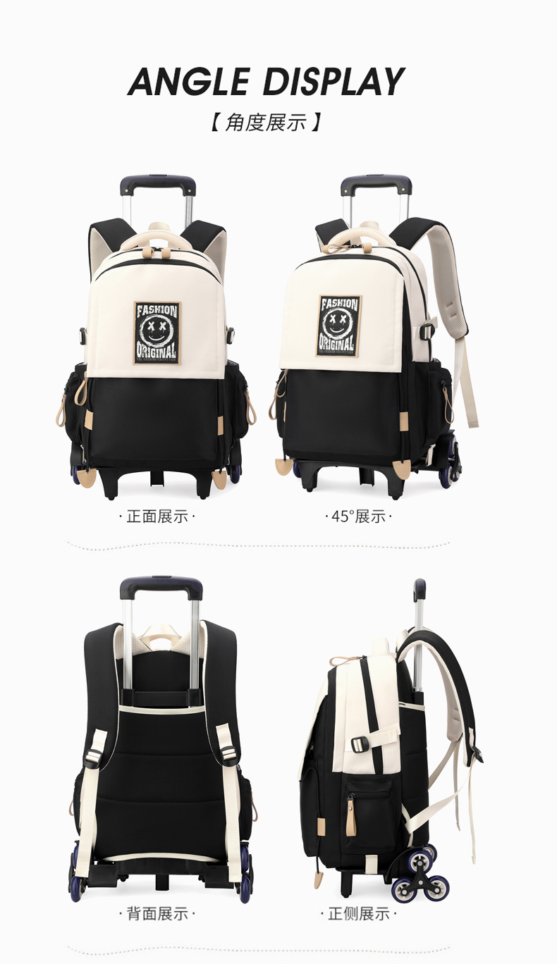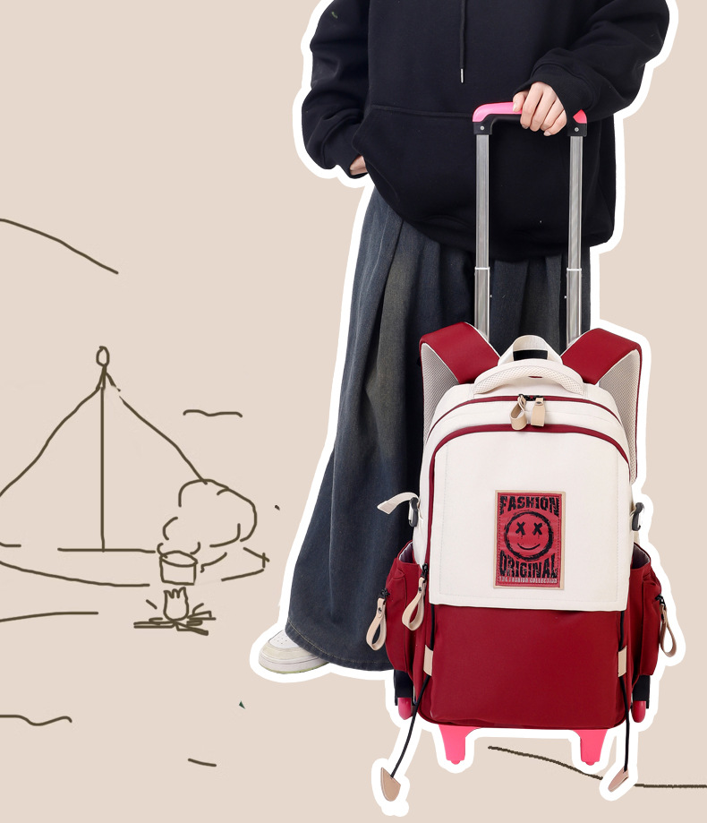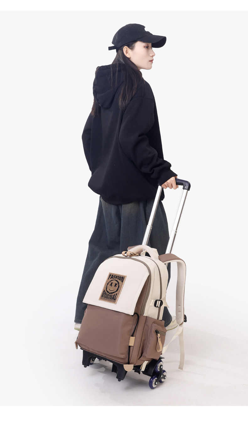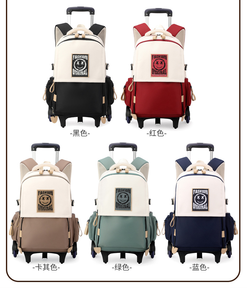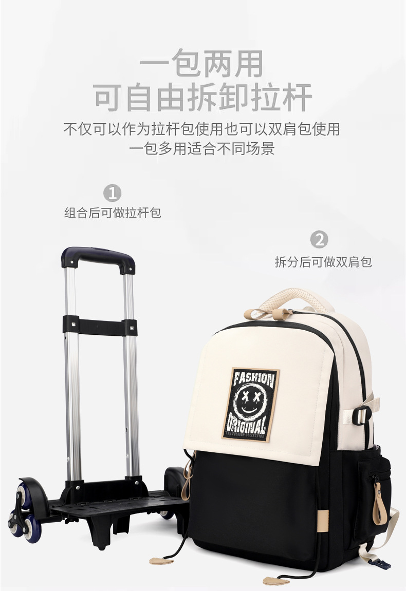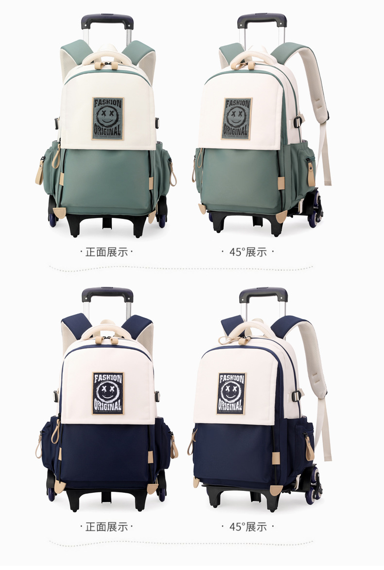 Natural Fish 2024 nueva mochila escolar con barra de ruedas para estudiantes de secundaria, mochila de gran capacidad para subir escaleras para estudiantes de primaria de doble uso para subir escaleras
