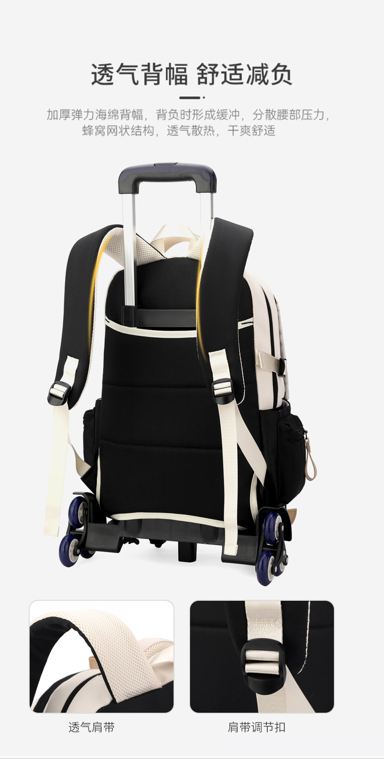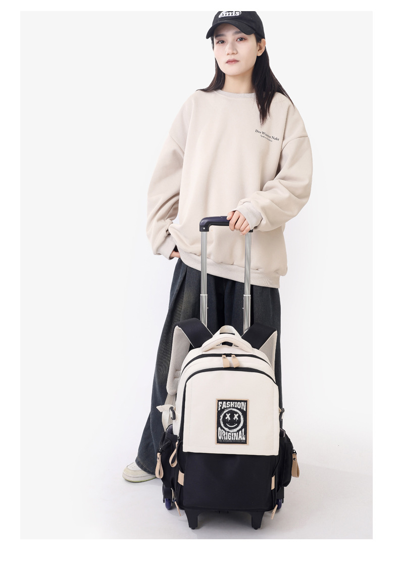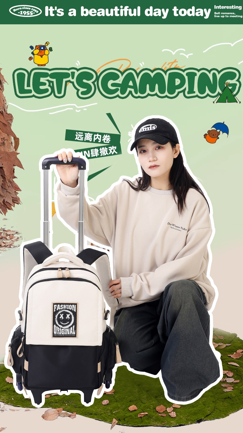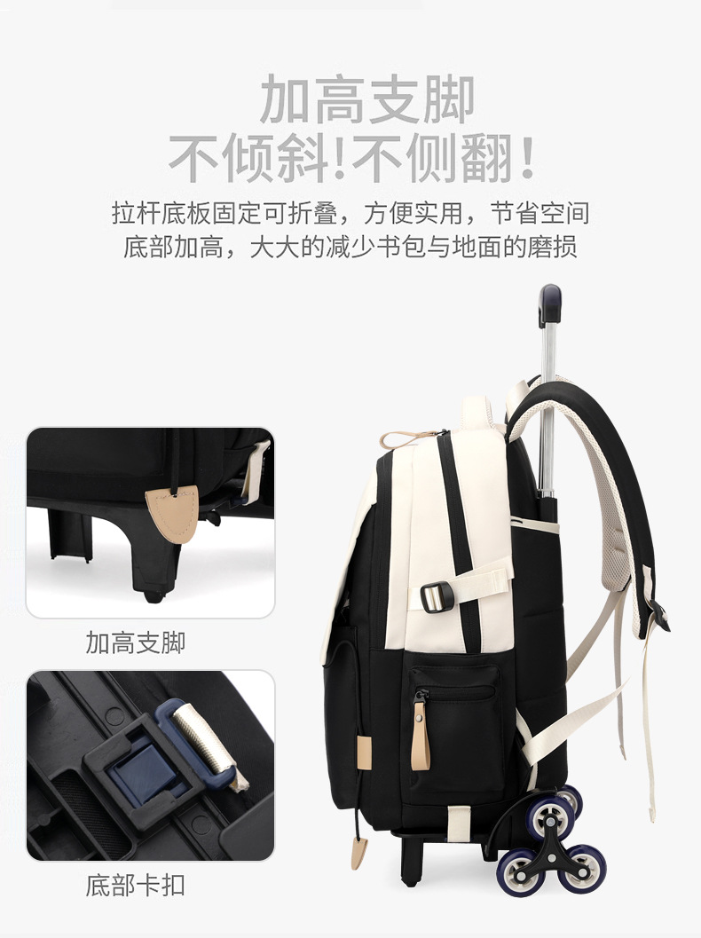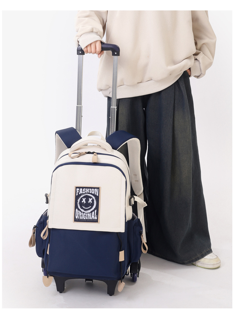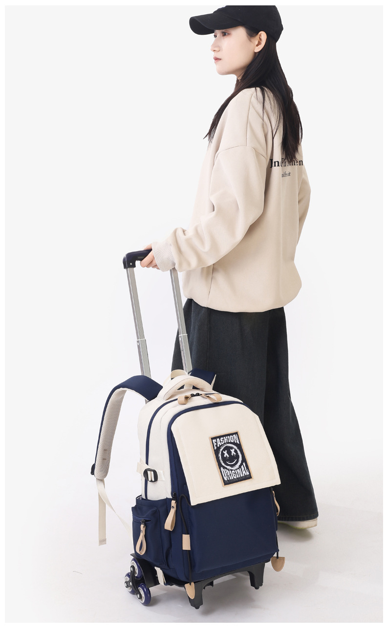 Natural Fish 2024 nueva mochila escolar con barra de ruedas para estudiantes de secundaria, mochila de gran capacidad para subir escaleras para estudiantes de primaria de doble uso para subir escaleras