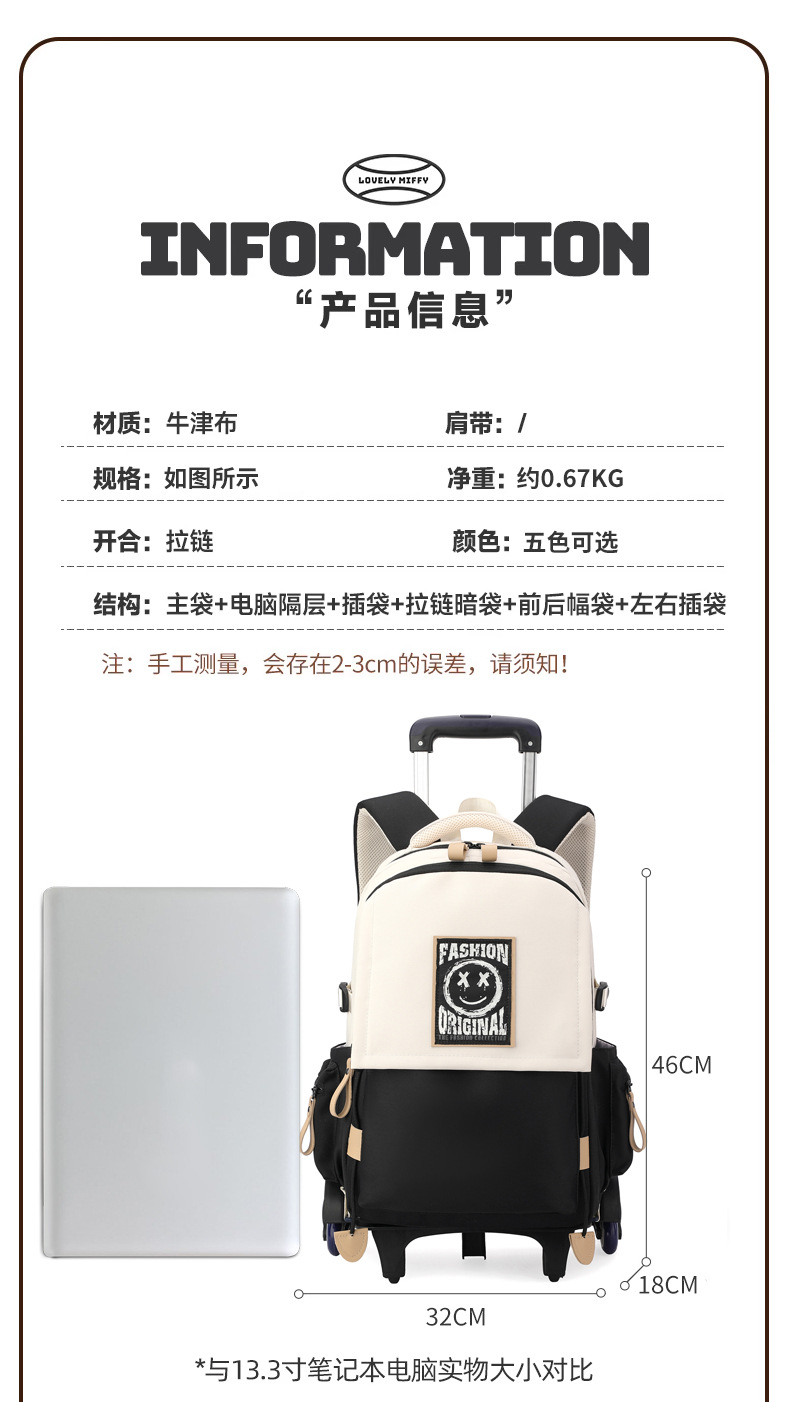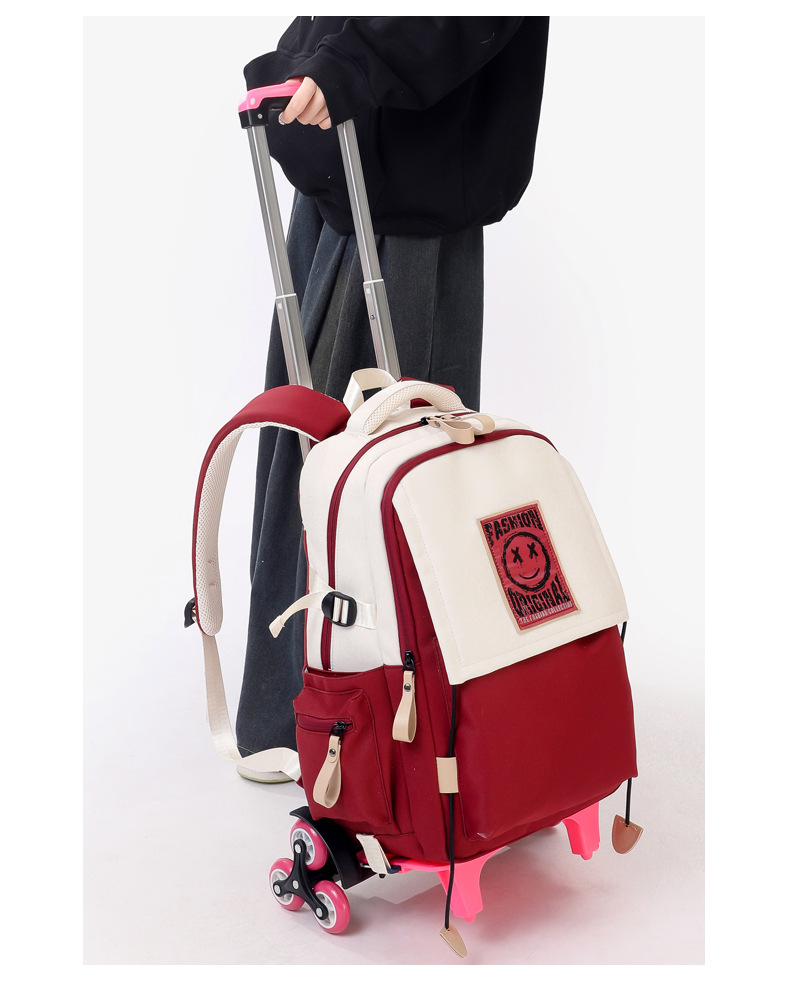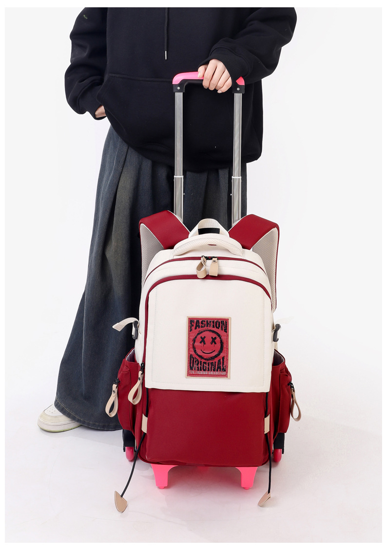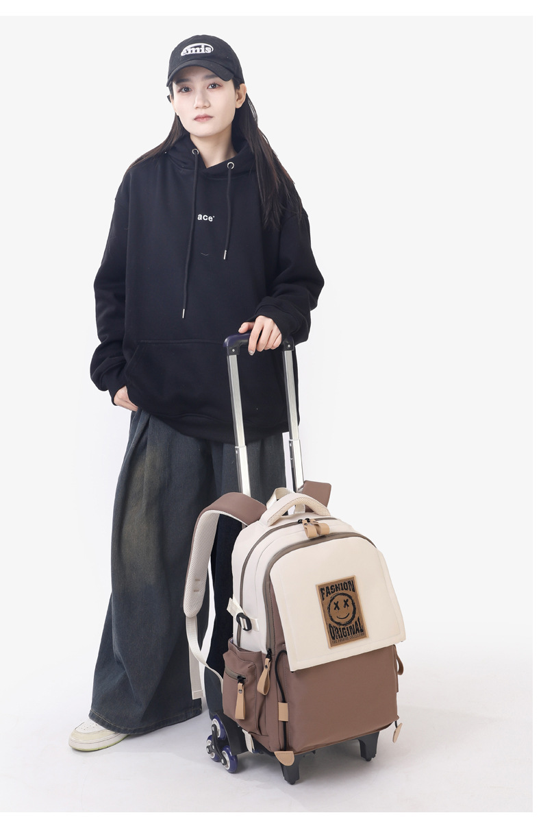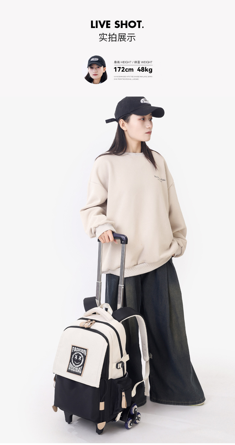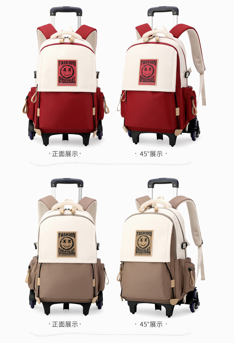 Natural Fish 2024 nueva mochila escolar con barra de ruedas para estudiantes de secundaria, mochila de gran capacidad para subir escaleras para estudiantes de primaria de doble uso para subir escaleras