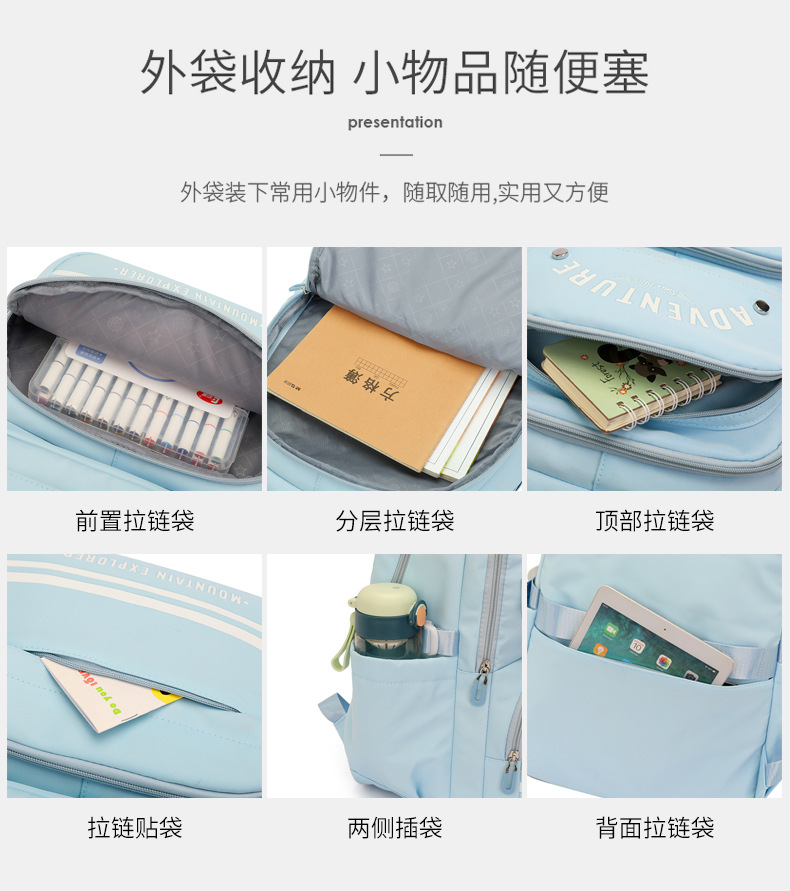 Peces naturales nuevos niños de la escuela primaria mochila Grado tres a seis niñas ligero colegio femenino