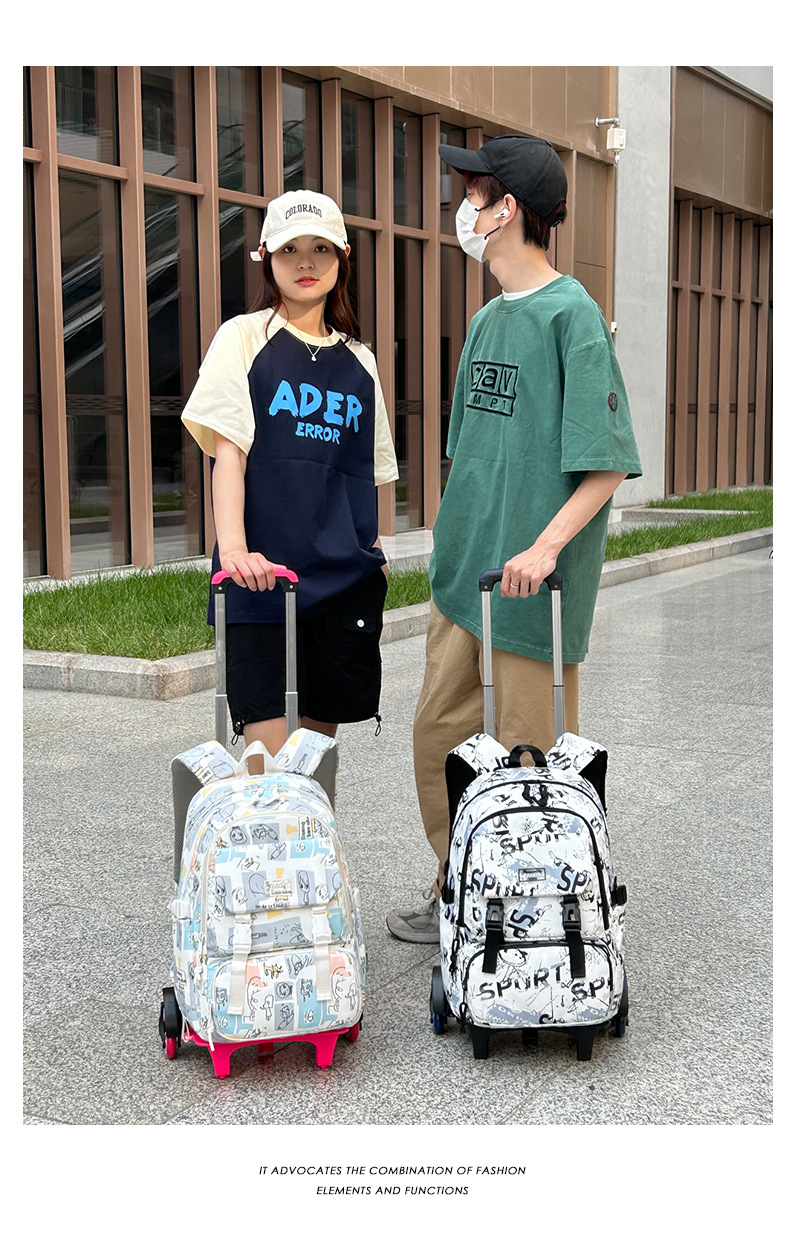 Natural Fish nuevo grado 2 a 6 escalera escalada carro mochila Junior High School niños gran capacidad desmontable entrega de una sola pieza