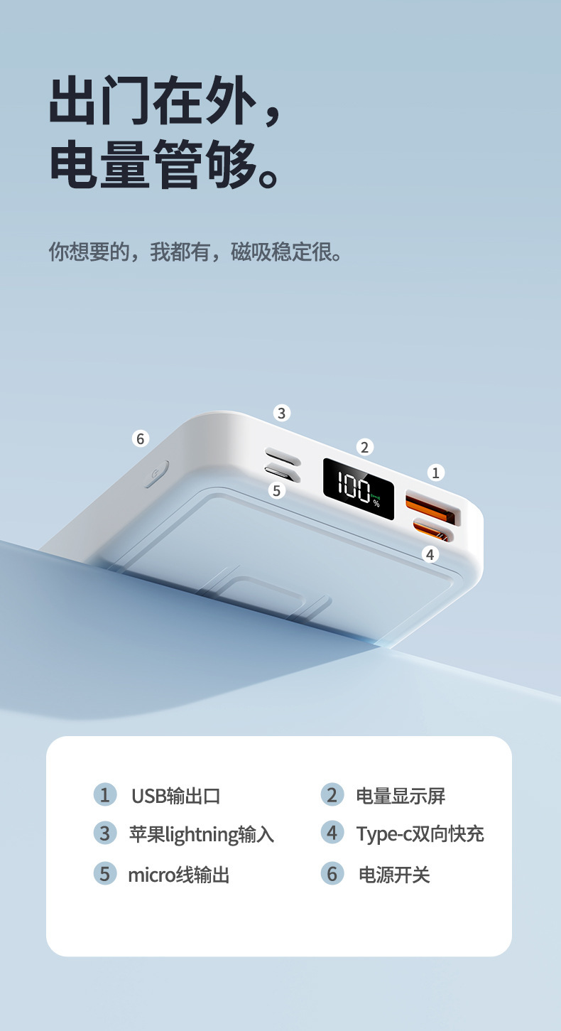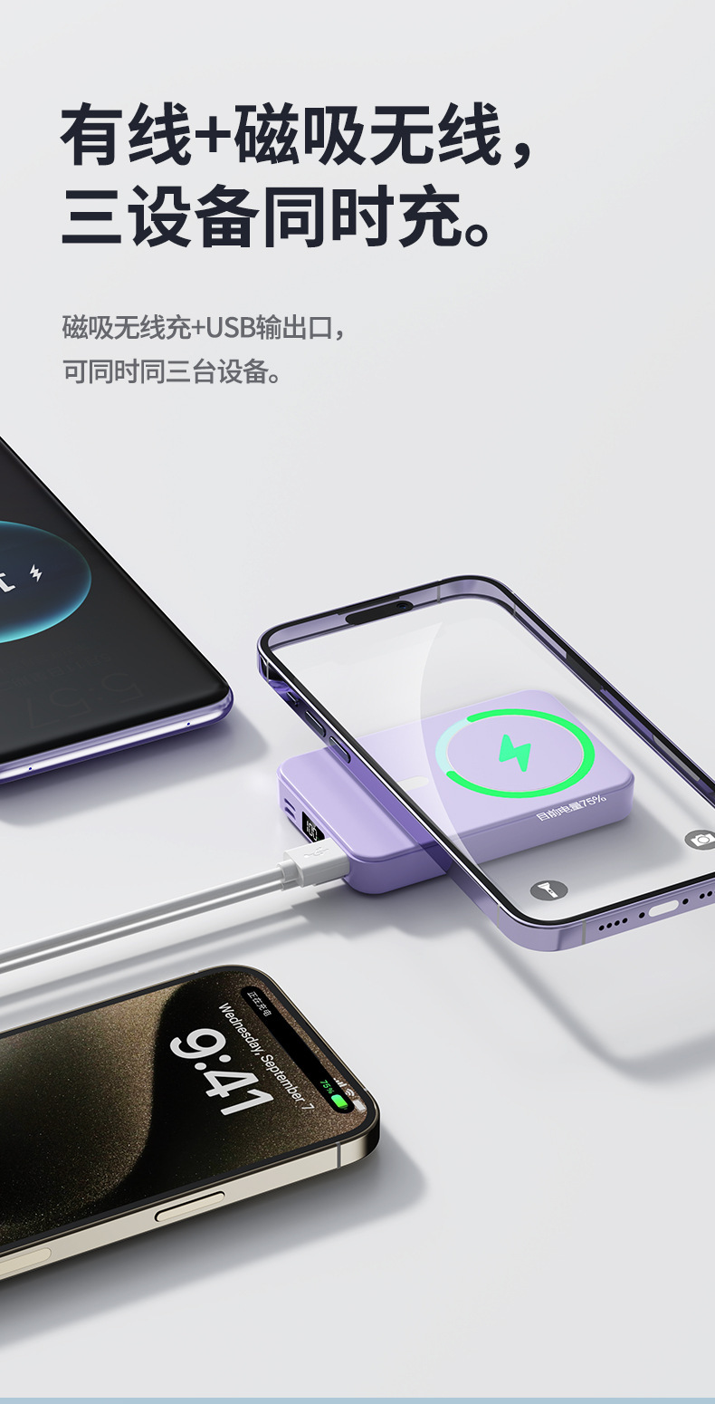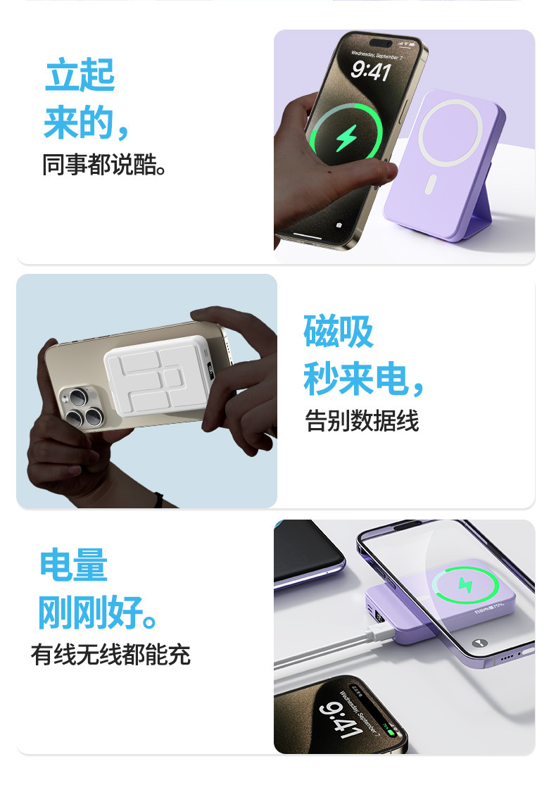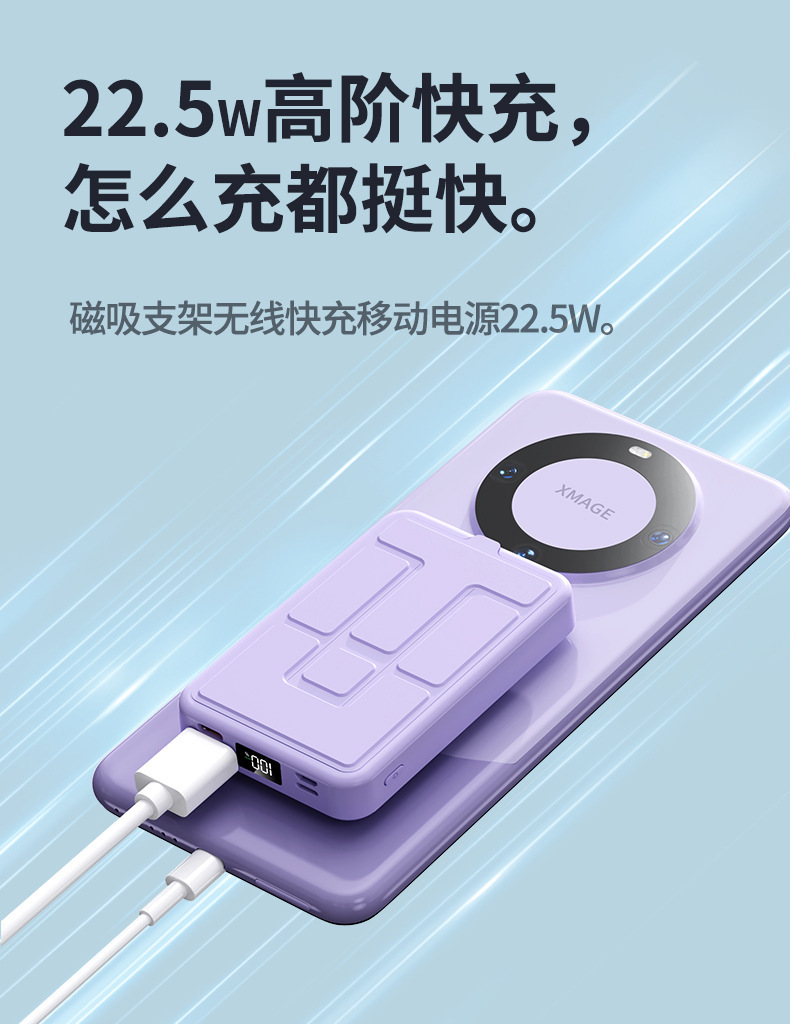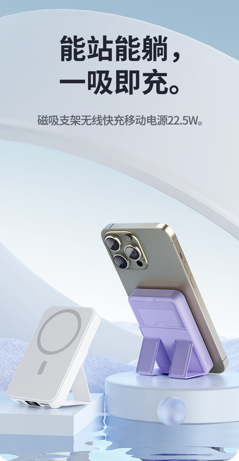 Cargador Inalámbrico Magnético Cross-mirror TiKMagsafe con Soporte, Banco de Energía de 10000 mAh, Carga Rápida de 22.5W, Fuente de Alimentación Móvil