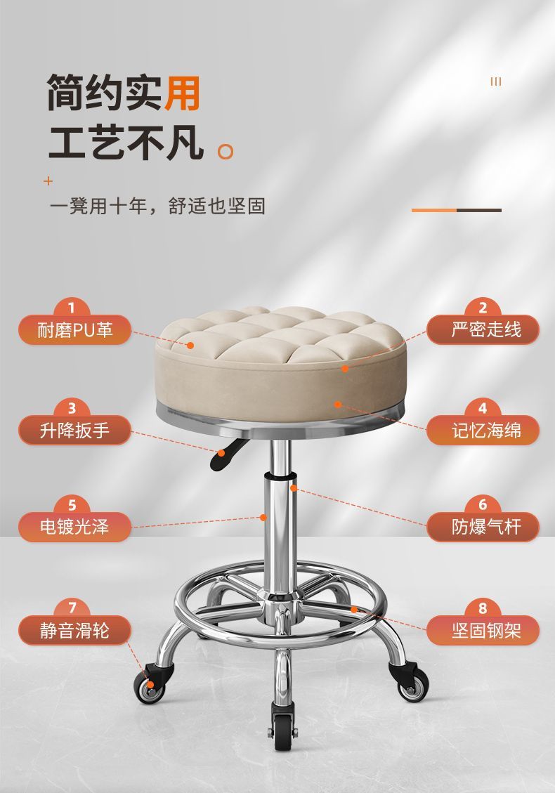 Taburete de belleza, polea de elevación rotativa, taburete de computadora, taburete de manicuría, taburete redondo, peluquería, silla giratoria, salón de peluquería especial