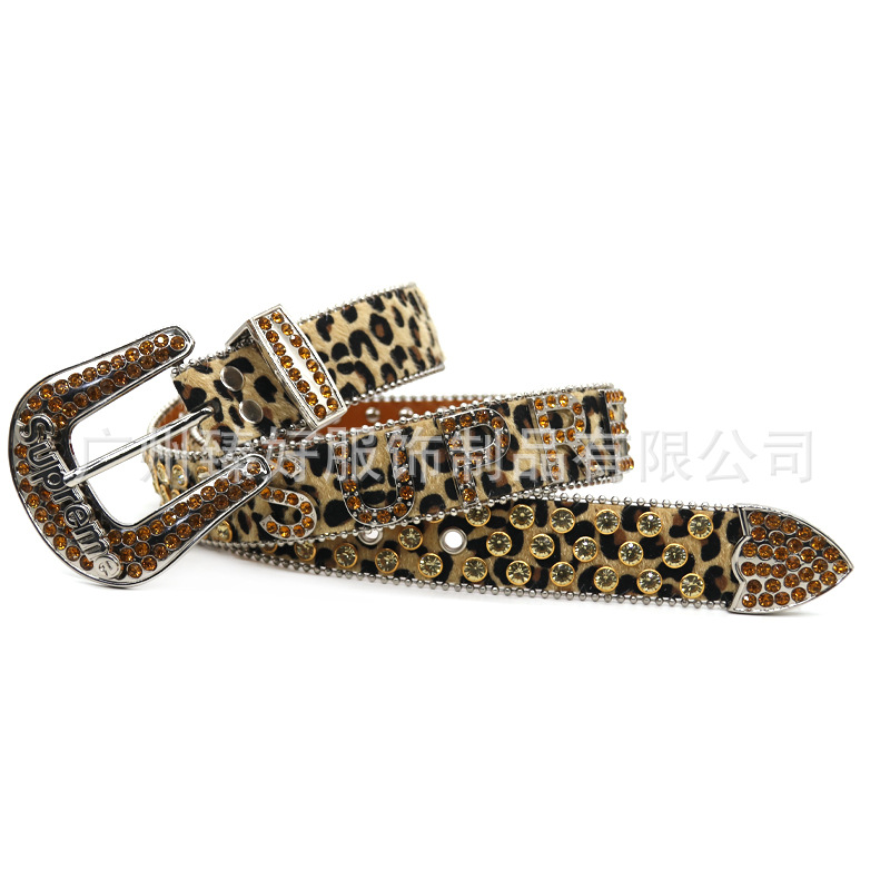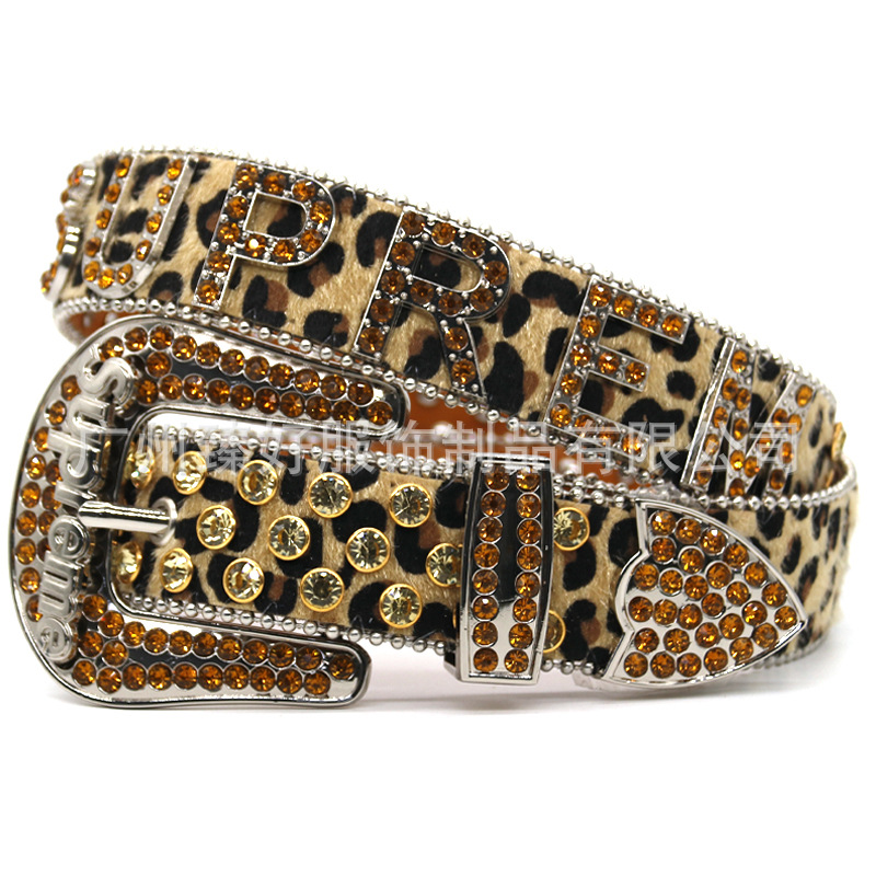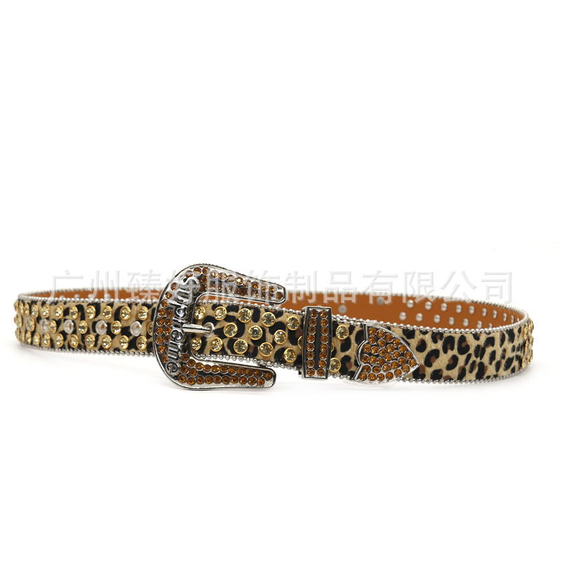 Guangzhou cinturón de diamante masculino, cinturón de leopardo femenino, moda punk, personalidad, letras, tendencia, cinturón de accesorios supremos