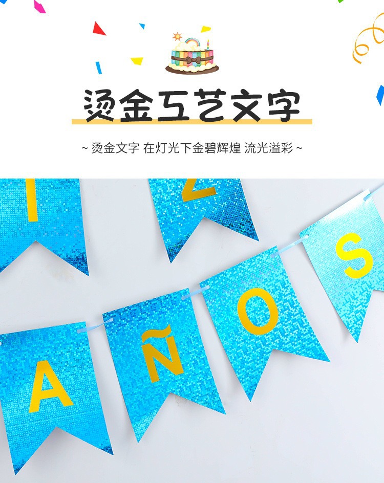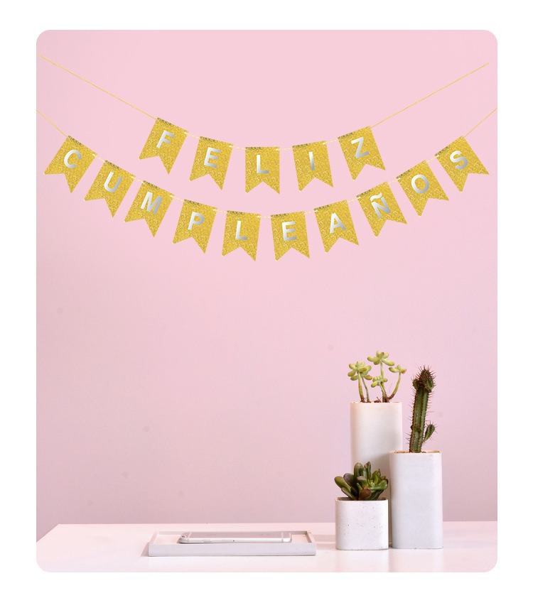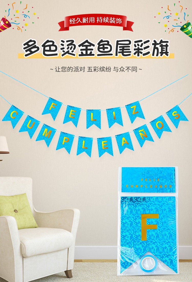 Bandera Láser con Diseño de Puntos en Inglés y Cola de Pez Dorada, Decoración Creativa para Fiestas, Bandera Colgante con Cinta