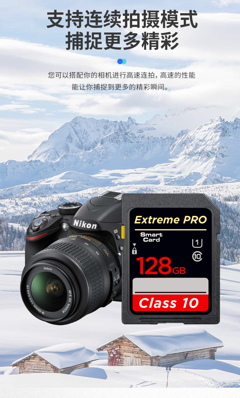 Tarjeta de memoria SD para cámara de 128 GB de alta velocidad, adecuada para cámaras sin espejo Canon, Sony, Fuji y tarjetas de almacenamiento DSLR