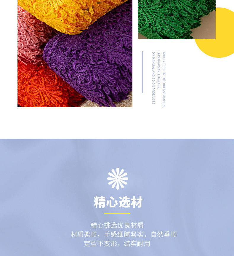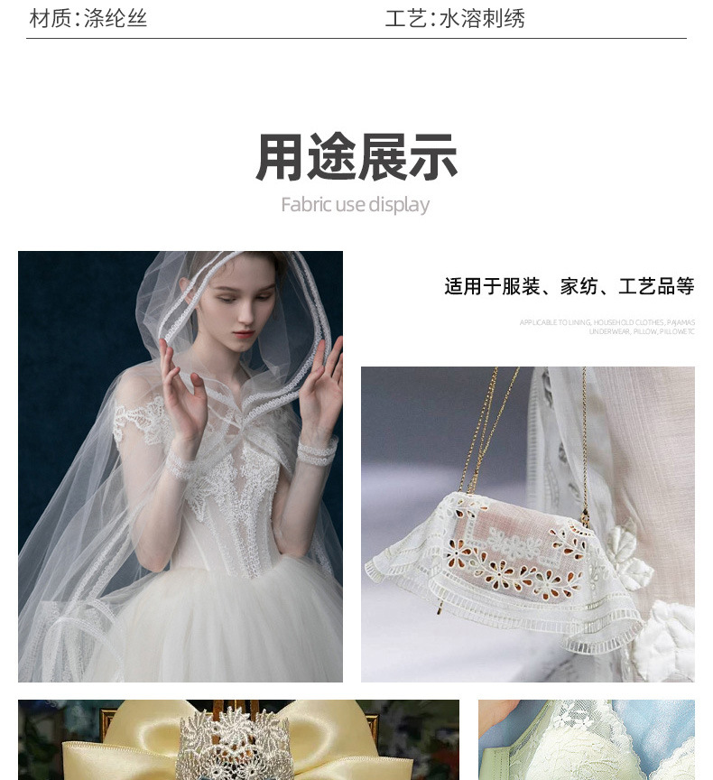 | ámbito de aplicación | Pijamas, vestidos, decoración del hogar, cortinas, ropa, ropa infantil, almohadillas para sofás, hechas a mano por bricolaje, mantas, ropa, faldas, ropa para madres, artículos para el hogar, adornos para ventanas, envases de flores de regalo |