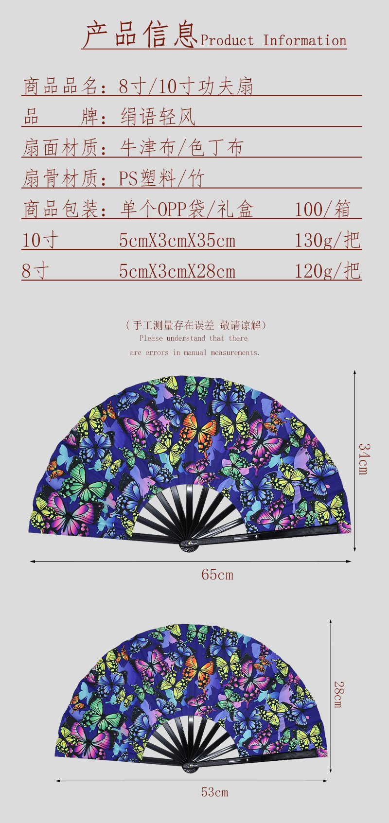Ventilador plegable de 33cm de kung fu, donde los fansat danza, fiesta, festival de música, suministro plegable