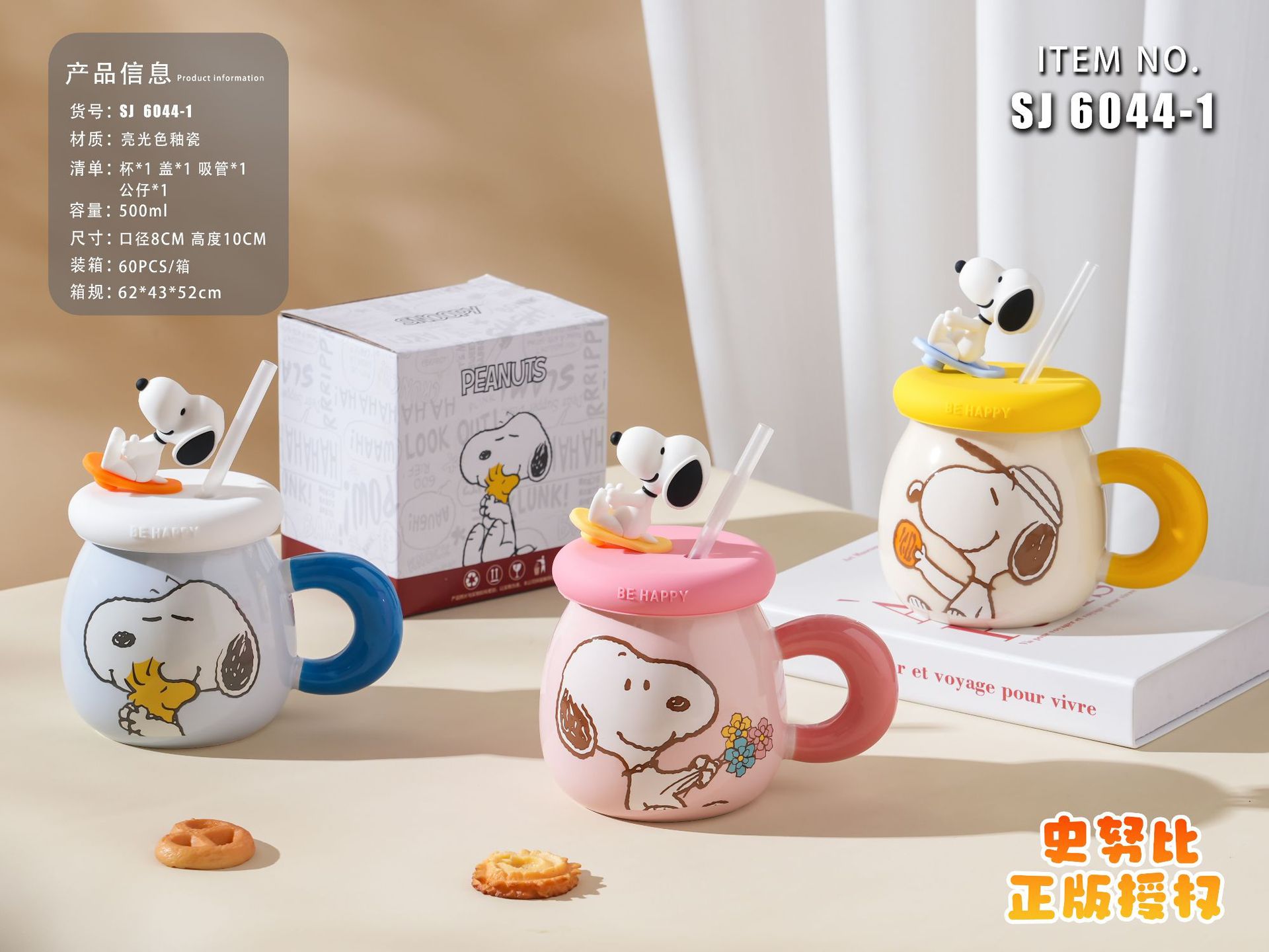Auténtico Snoopy de alto valor facial, taza de agua de cerámica con taza de cerámica de oficina doméstica con taza de agua de tapa directa